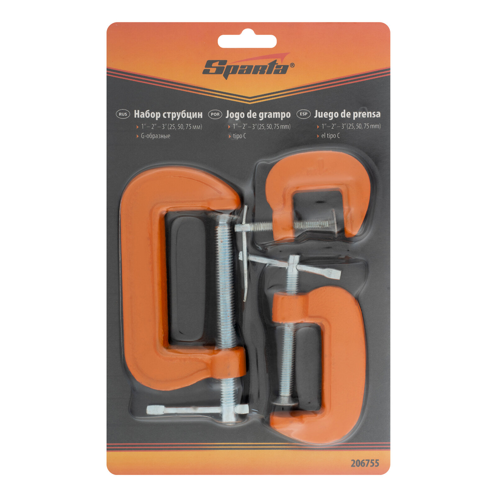 Набор: струбцины G-образные, 3 шт., 25-50-75 мм// Sparta 206755