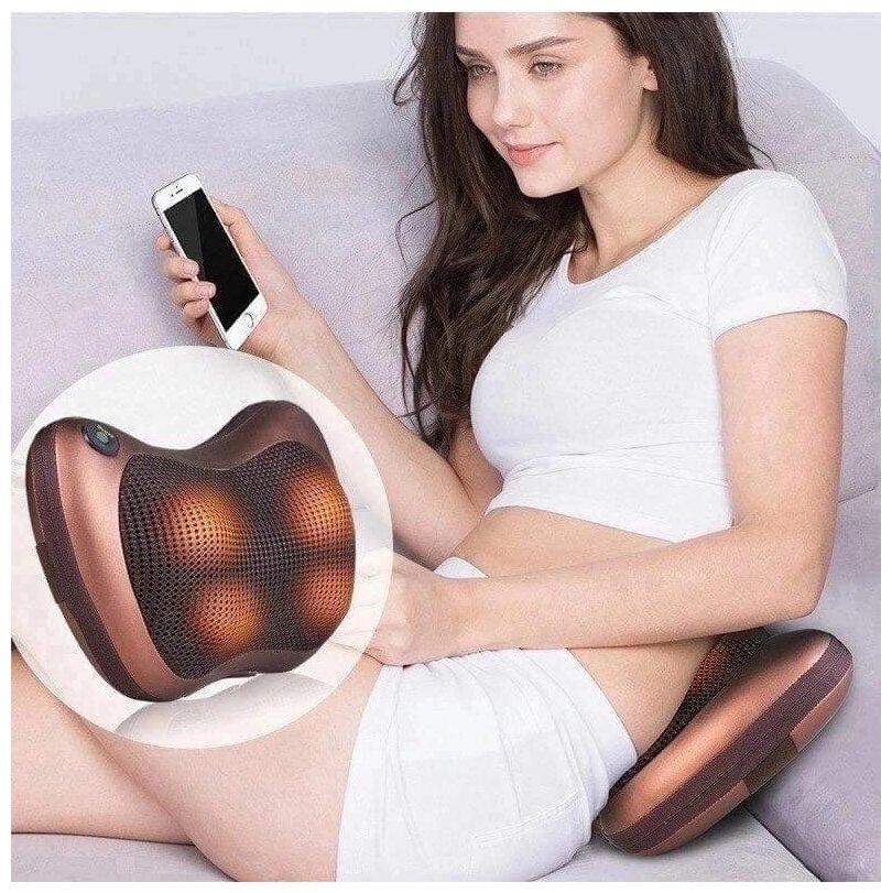 Массажная подушка для спины, шеи и плеч с подогревом/Электрический, роликовый массажер/Электромассажер интересное: