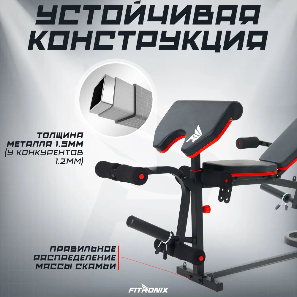 СохранитьСкамья FITRONIX 1900 для жима/пресса/растяжки/скотта/универсальная, до 120кг, до 250кг интересное: