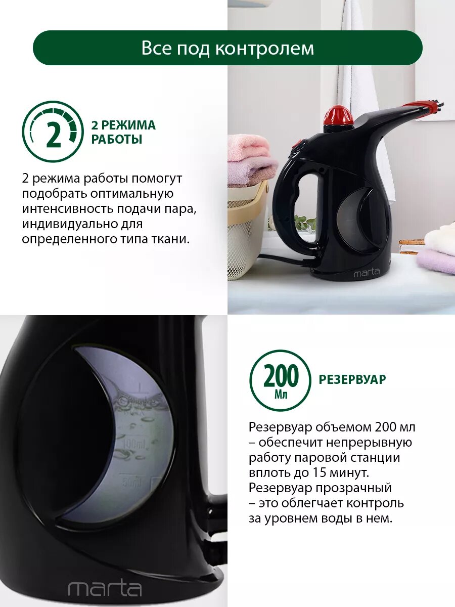 Парогенератор ручной отпариватель MARTA MT-1192 бордовый гранат интересное: