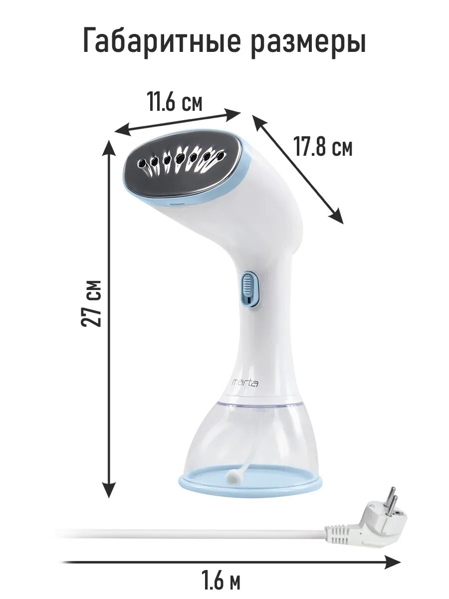 Парогенератор ручной отпариватель MARTA MT-ST1194A белый/голубой интересное: