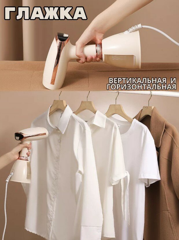 Ручной отпариватель для одежды, дорожный, с насадкой щеткой, с дисплеем, бежевый, парогенератор для вещей, паровой, электрический, для дома интересное: