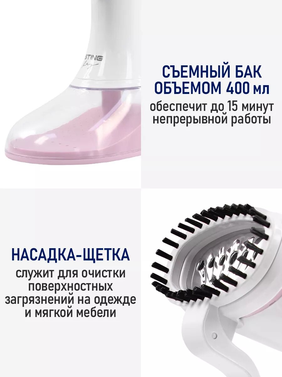 Отпариватель для одежды STINGRAY ST-ST300A вертикальный 2700Вт, розовый/белый