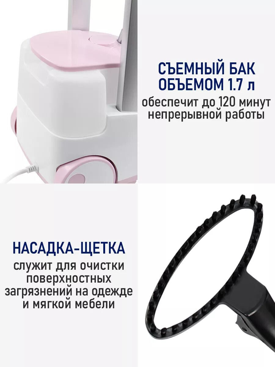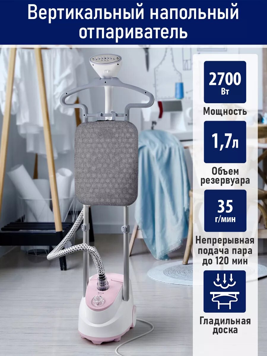 Отпариватель для одежды STINGRAY ST-ST300A вертикальный 2700Вт, розовый/белый