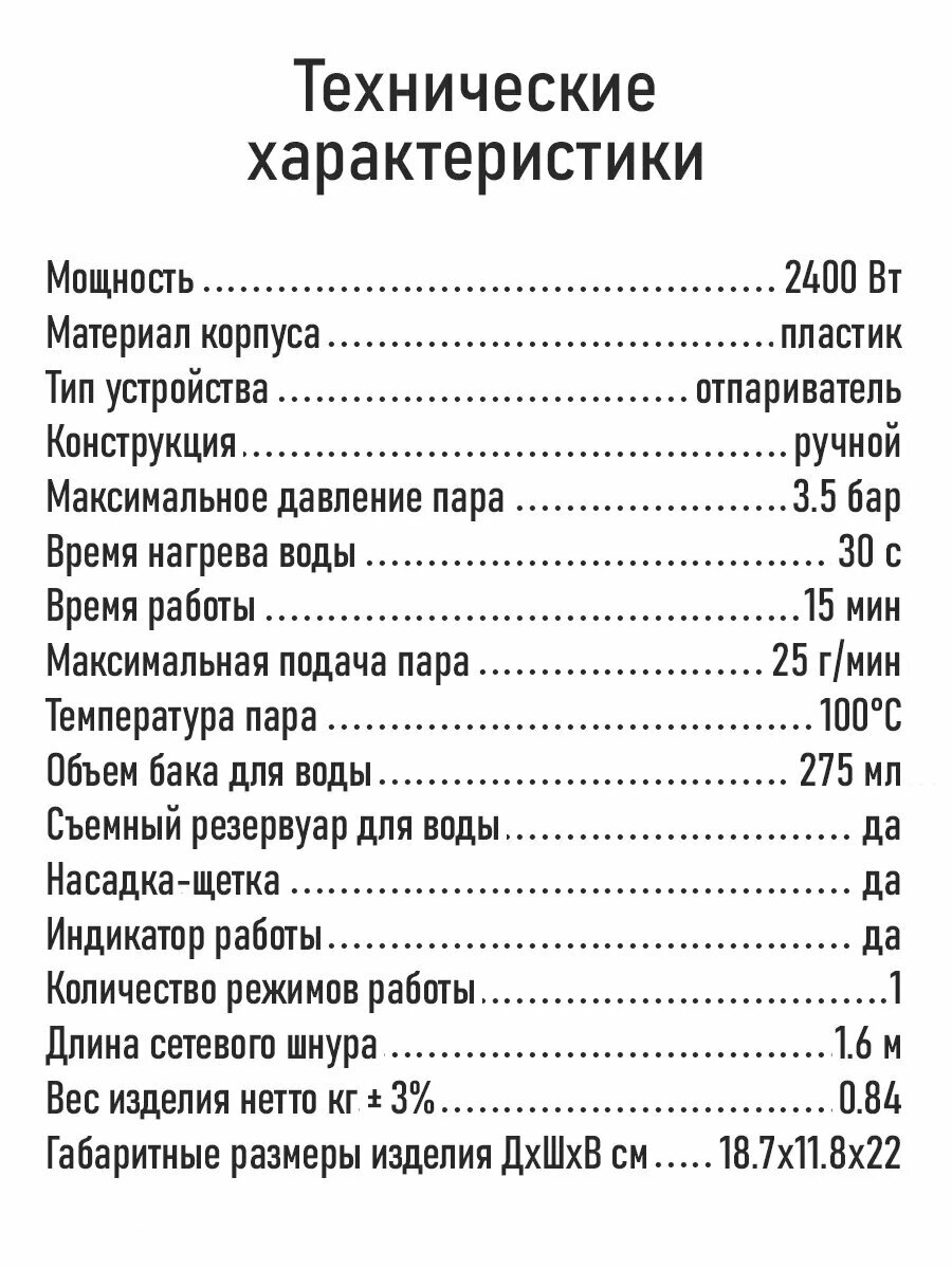 | Максимальная подача пара | 25 г/мин |
