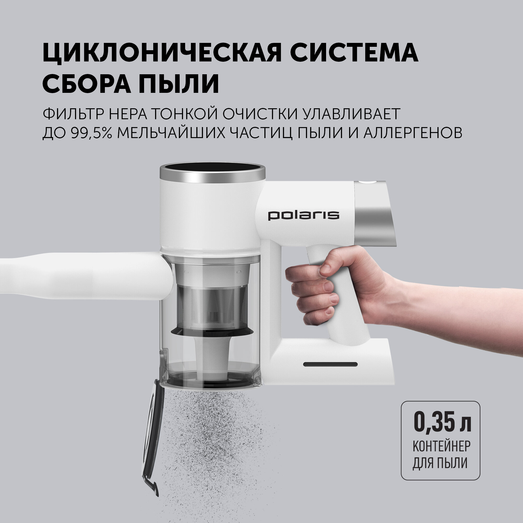 Беспроводной пылесос Polaris PVCS 4090 Space Sense, серый