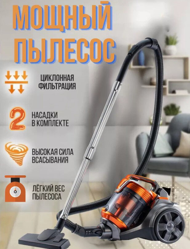 Пылесосдомашний , тихий бытовой пылесос, компактный передвижной пылесос, для дома, офиса,3500Вт, 3.5л пылесборник, шнур 5 м, орнажевый, черный интересное: