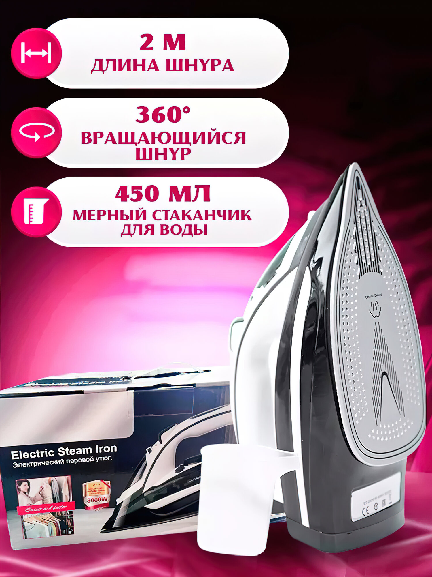 Утюг домашний, паровой утюг, керамика, 3000W, вертикальный пар, автоотключение, шаровое крепление интересное: