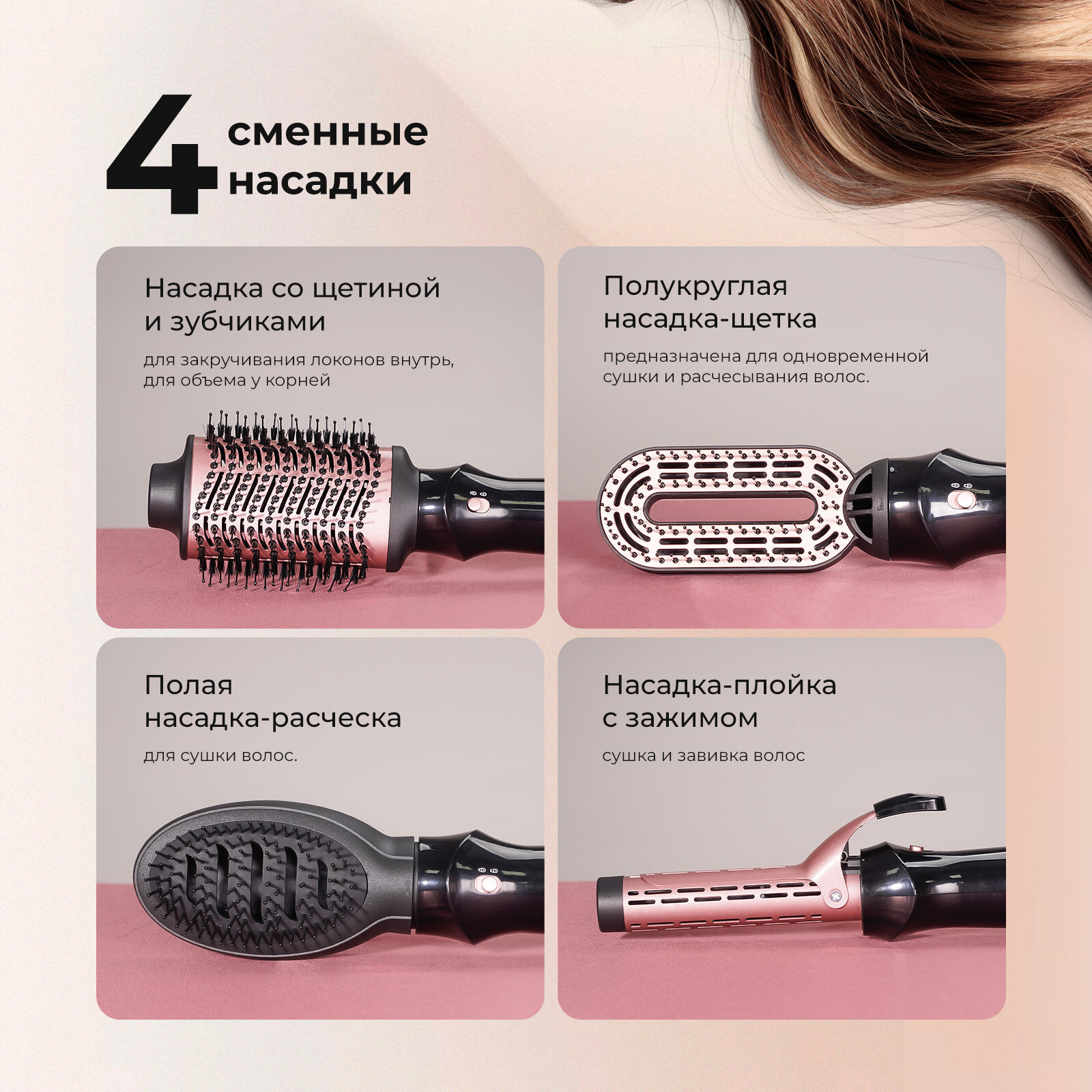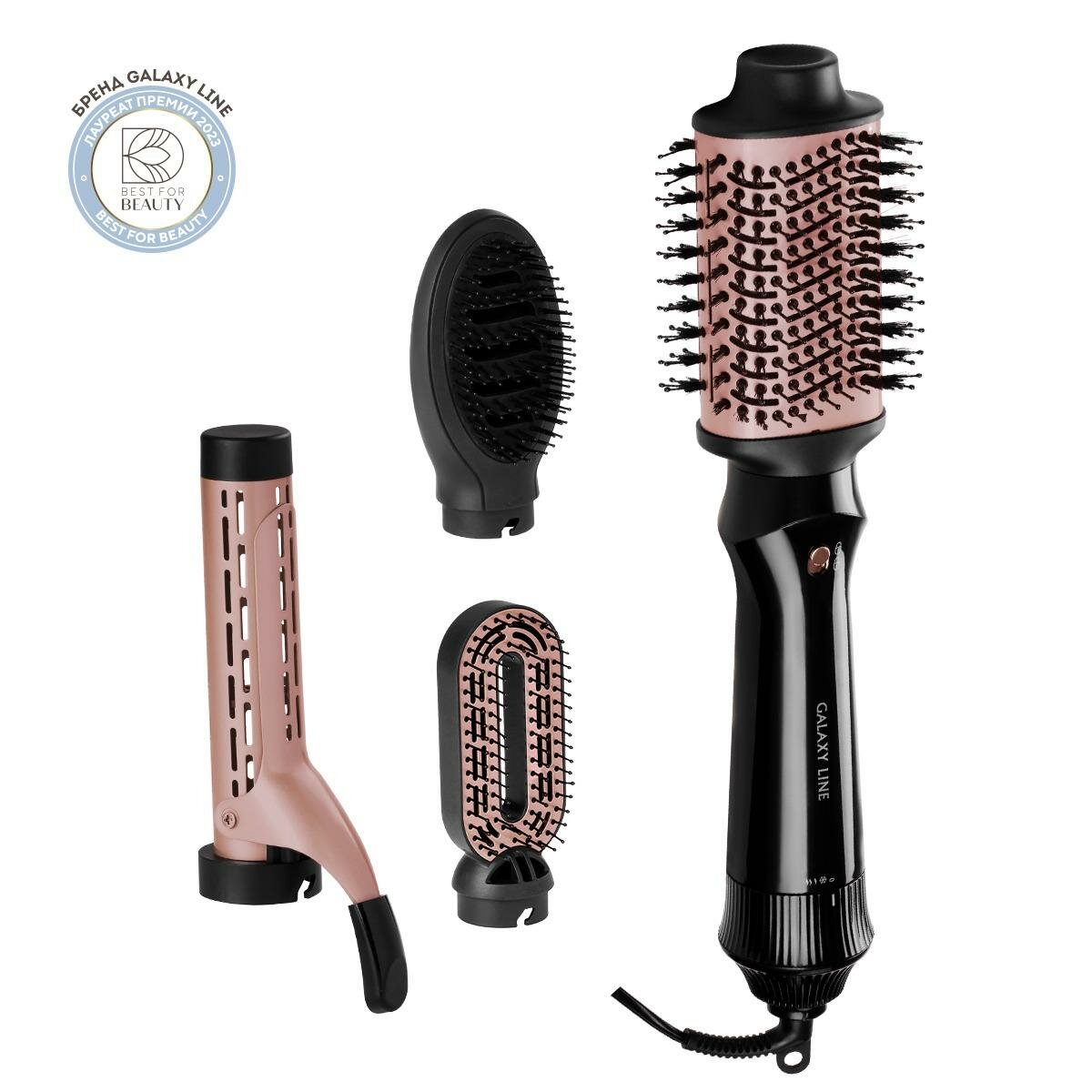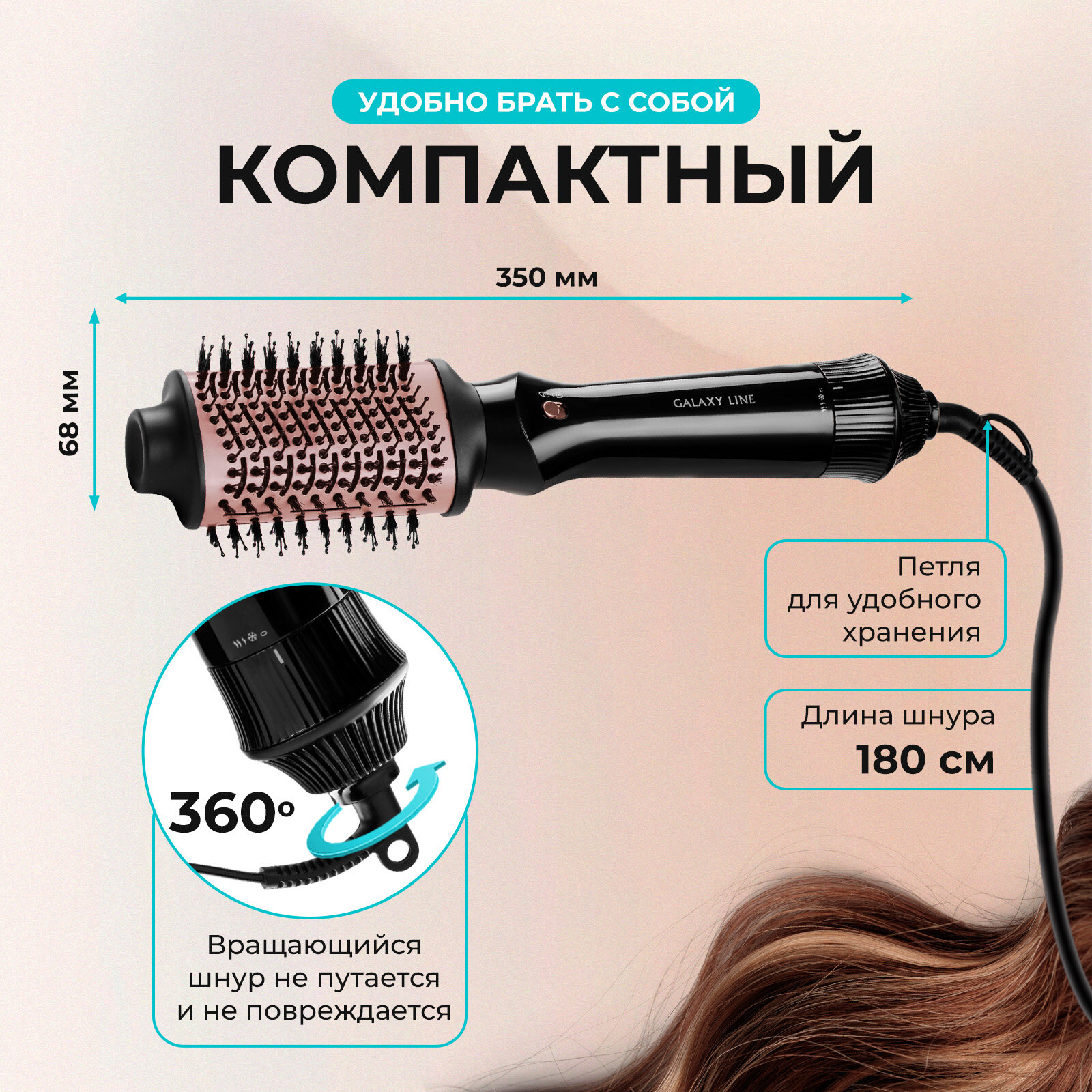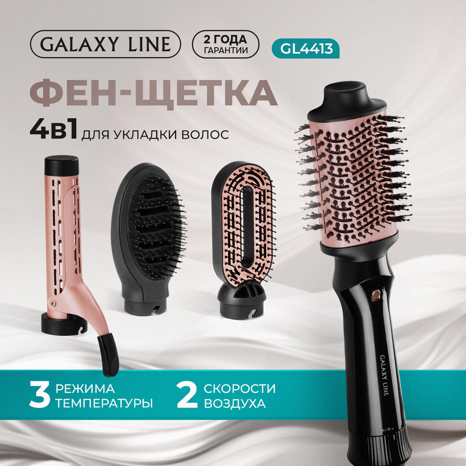 Фен-щётка для волос GALAXY LINE GL 4413, вращение шнура, 1200Вт, 3 температурных режима, 4 насадки интересное: