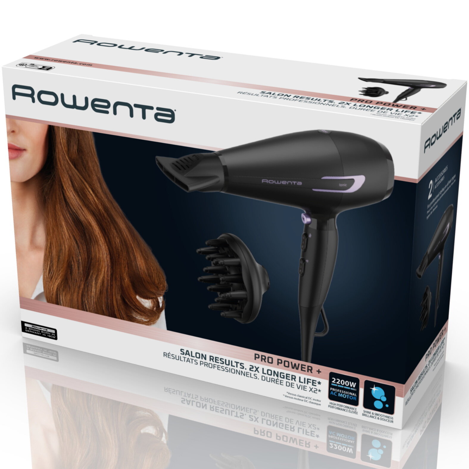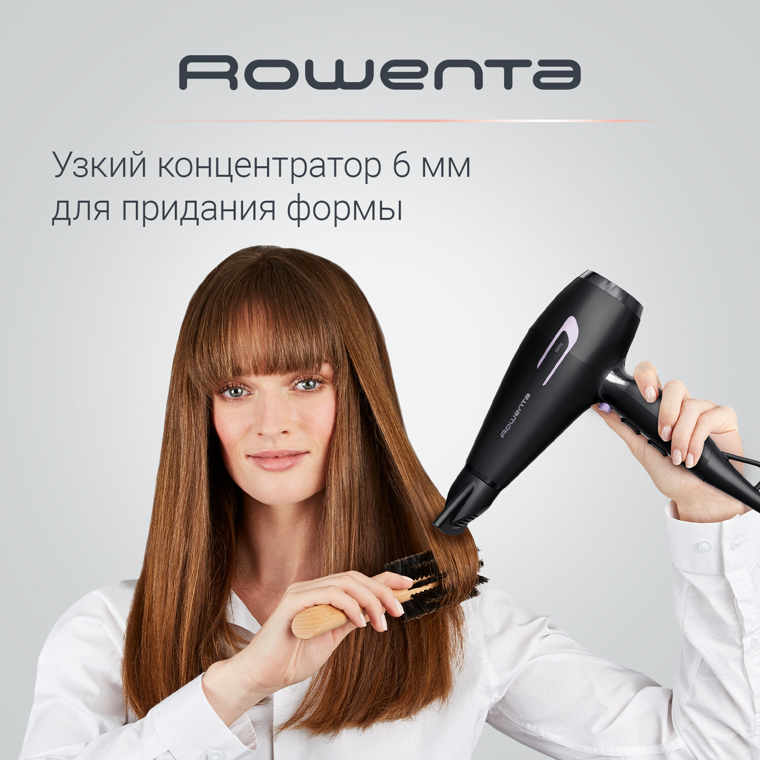 Купить Фен для волос Rowenta Pro Power+ CV7210F0, с ионным генератором, 2 насадками, черный, 2200 Вт