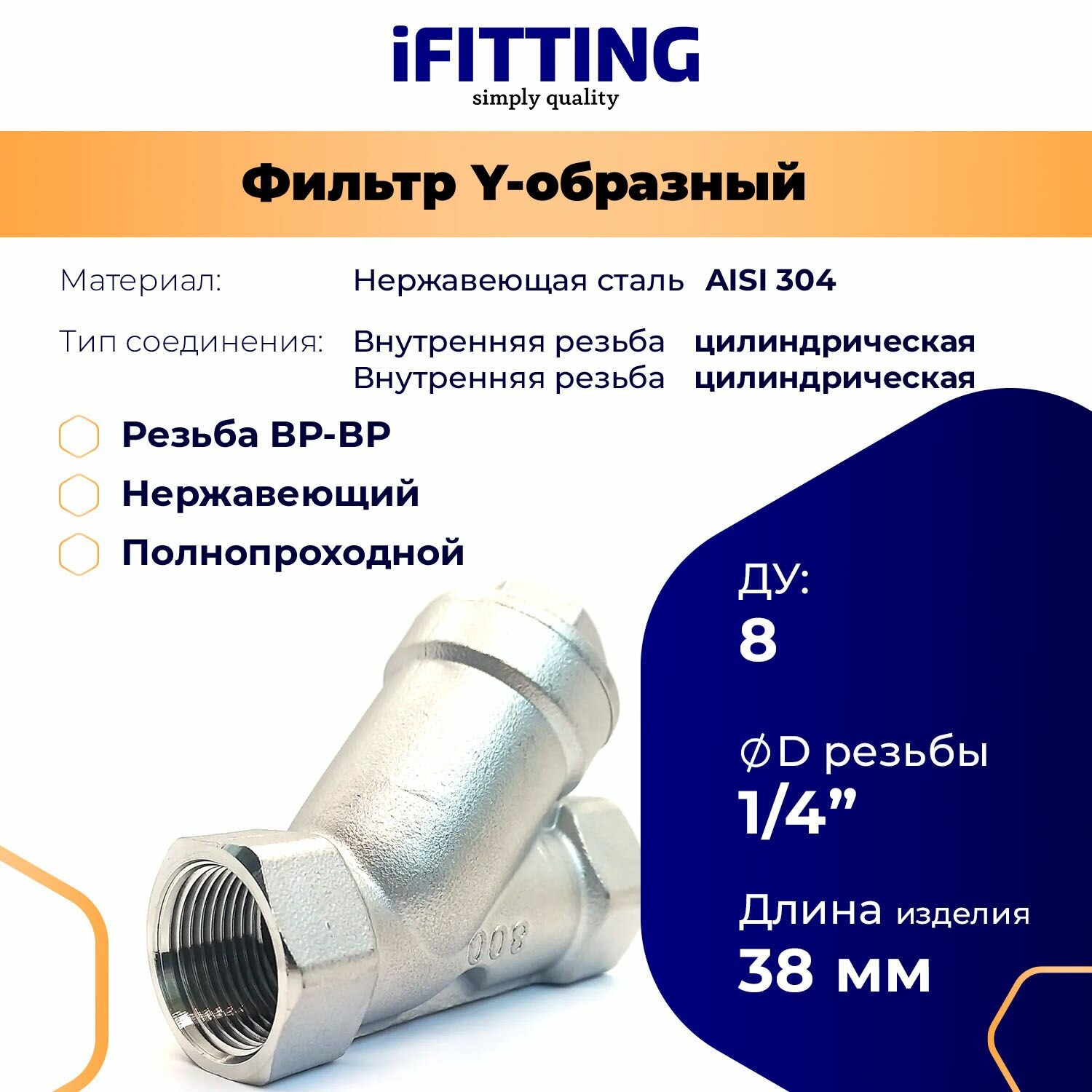 Купить Фильтр косой сетчатый 1/4" ДУ8 нержавеющий грубой очистки, сетка 177мкм
