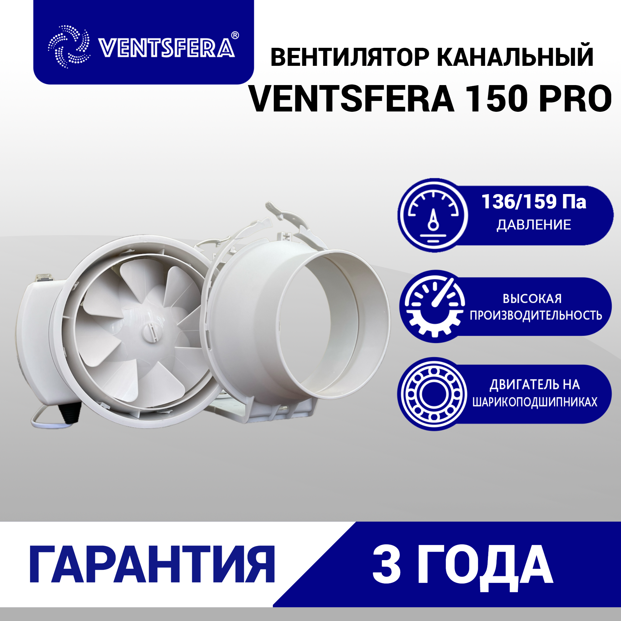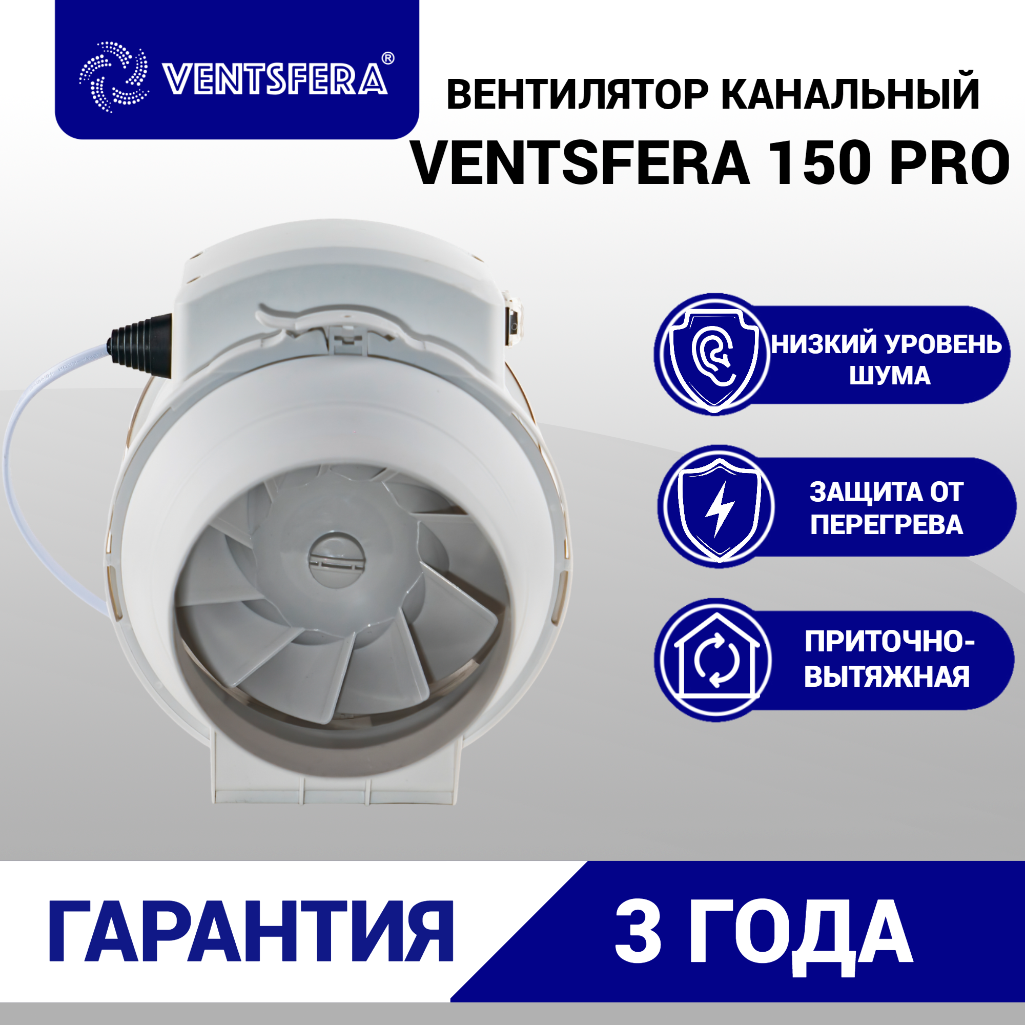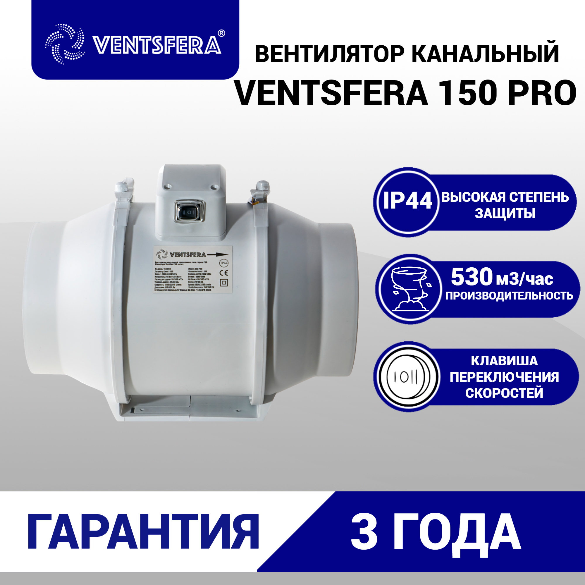 Вентилятор канальный VENTSFERA PRO D150мм, двухскоростной осевой + кнопка на корпусе для переключения скоростей 530м3/ч интересное: