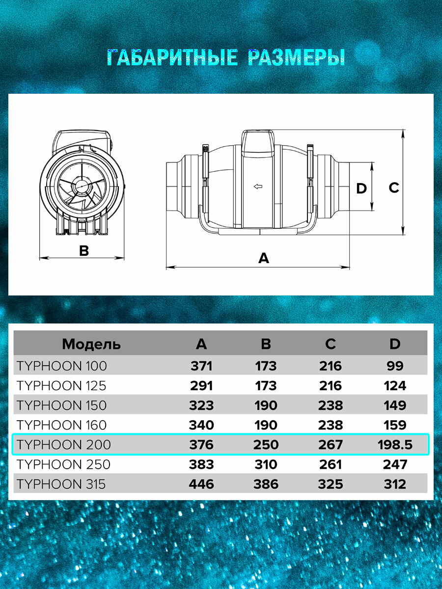 Вентилятор канальный ERA TYPHOON 200 2SP, D200, 2 скорости, расход воздуха 110м3/час