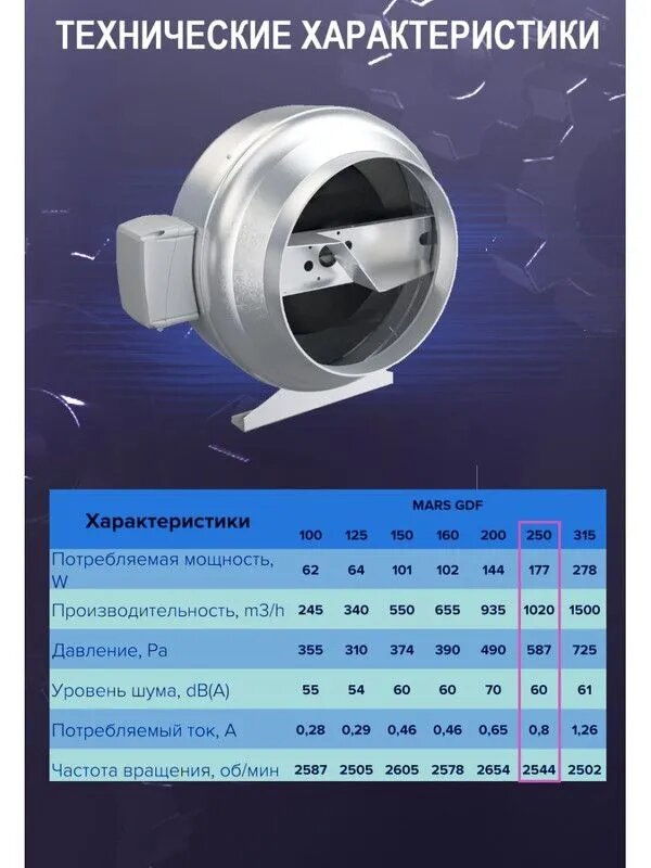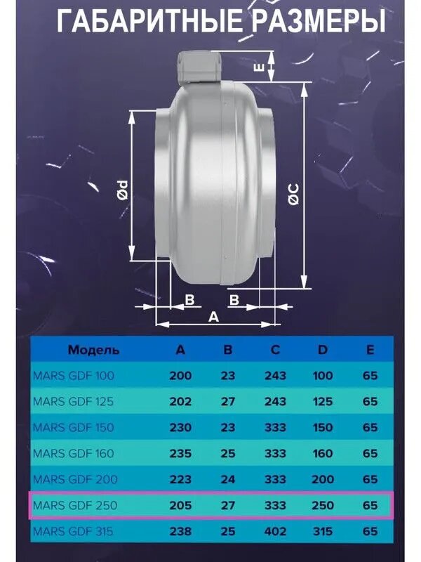 Вентилятор ERA MARS GDF, центробежный, канальный, установочный диаметр 250мм интересное: