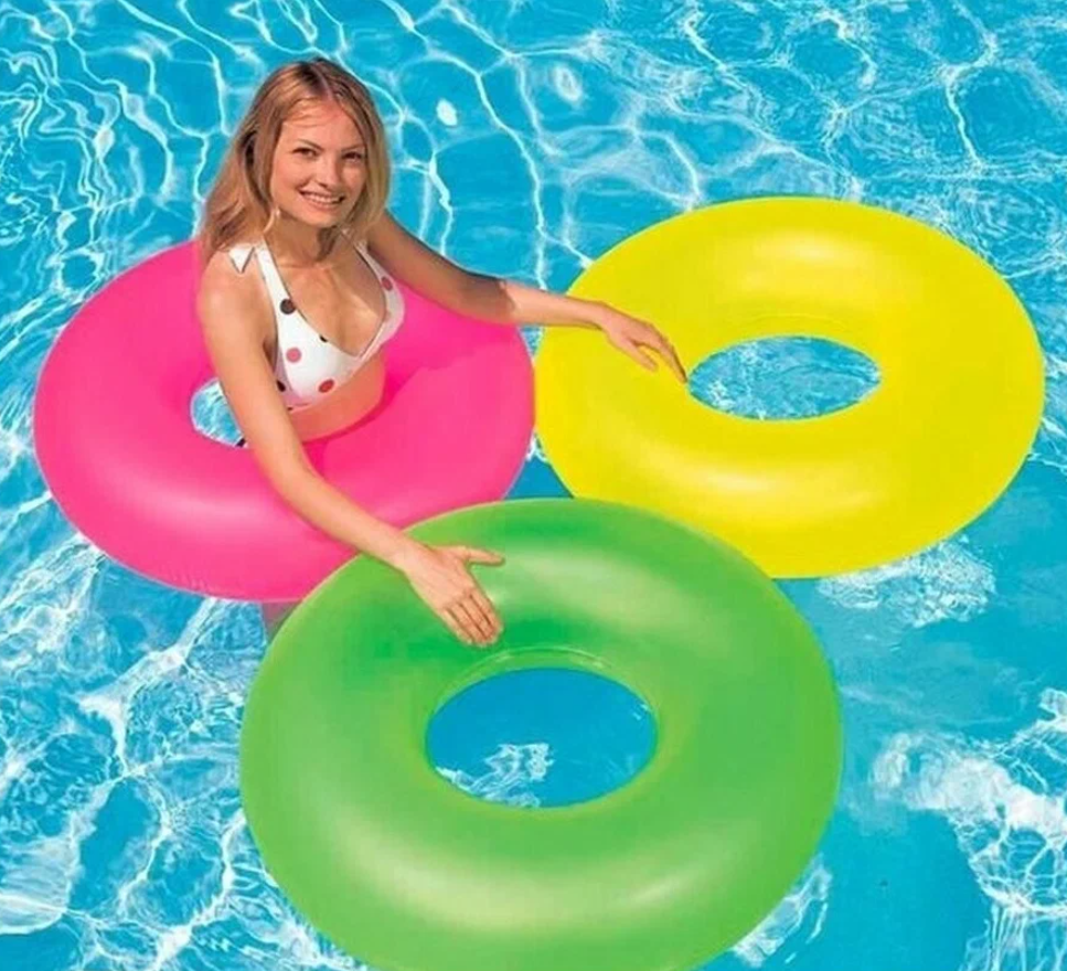 Надувной круг для плавания INTEX Neon 91 см, для взрослых и детей от 9 лет на пляж и в бассейн, нагрузка до 60 кг, плотный неон, без насоса, непрозрачные, цвет микс / 1 шт