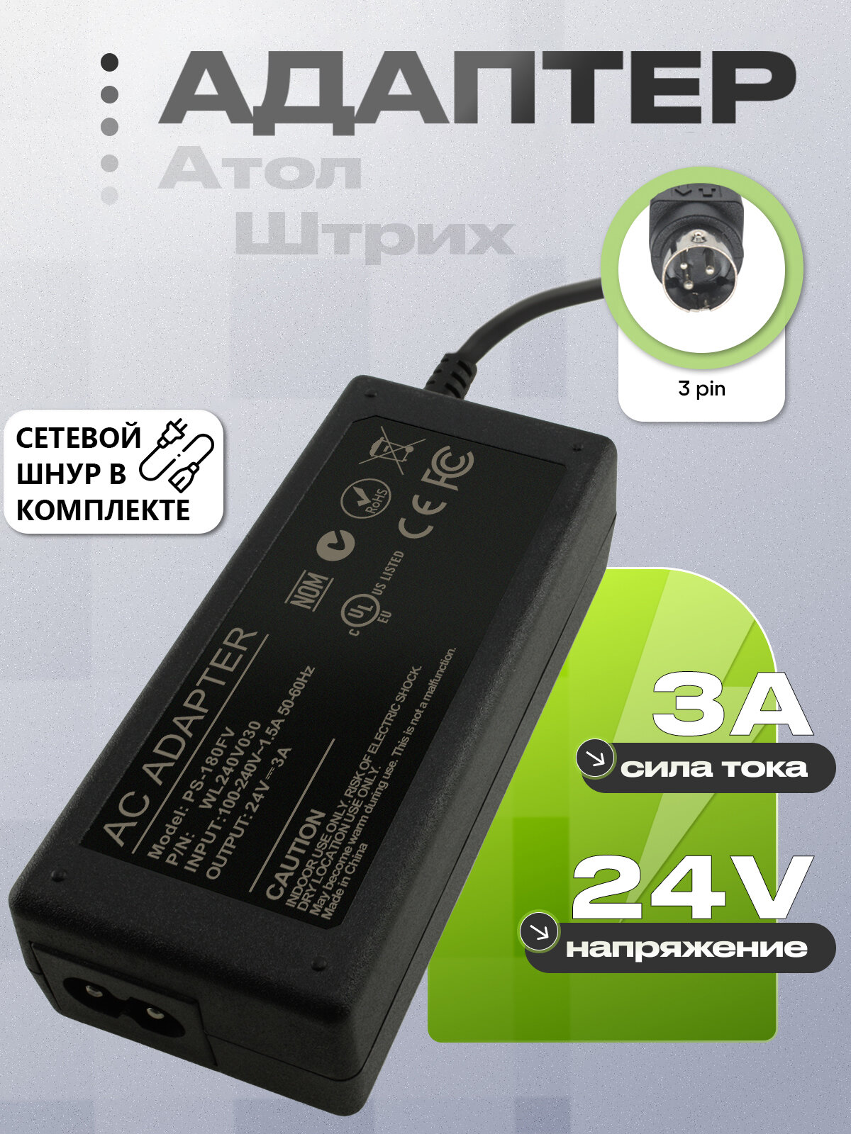 Адаптер (блок) питания 24V, 2.5A - 3A, 3pin (PS-150, PS-170, M159B, FJ-SW2402500, PN-180C), для регистратора (кассы) интересное: