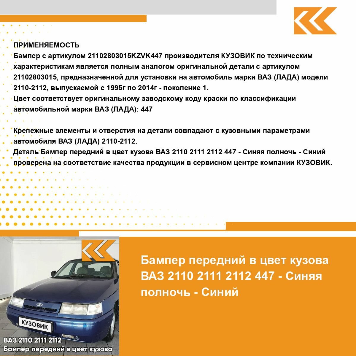 Ниже Вы можете прочитать отзывы на Бампер передний в цвет кузова для ВАЗ 2110 2111 2112 447 - Синяя полночь - Синий, ознакомится с подробными характеристиками, посмотреть интересные обзоры и фотографии на Бампер передний в цвет кузова для ВАЗ 2110 2111 2112 447 - Синяя полночь - Синий.
