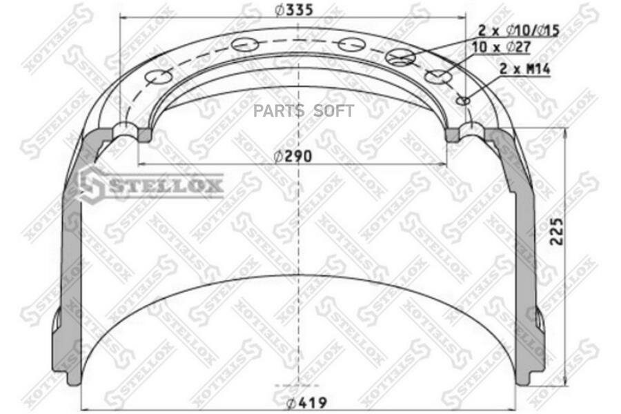 Сохранить85-00047-SX торм. барабан !(накл 19036) 419x178/184 H=225 d=290/335 n10x27.1 \Trailor L200TEM STELLOX 8500047SX | цена за 1 шт интересное: