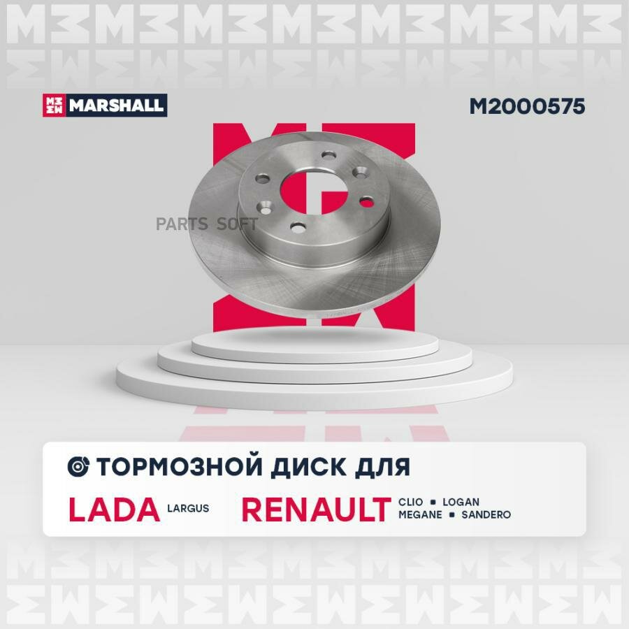 Тормозной Диск Передн. Lada Largus 12-, Renault Logan I, Ii 04-, Renault Sandero (Bs, B8) 07- (M2000 MARSHALL арт. M2000575