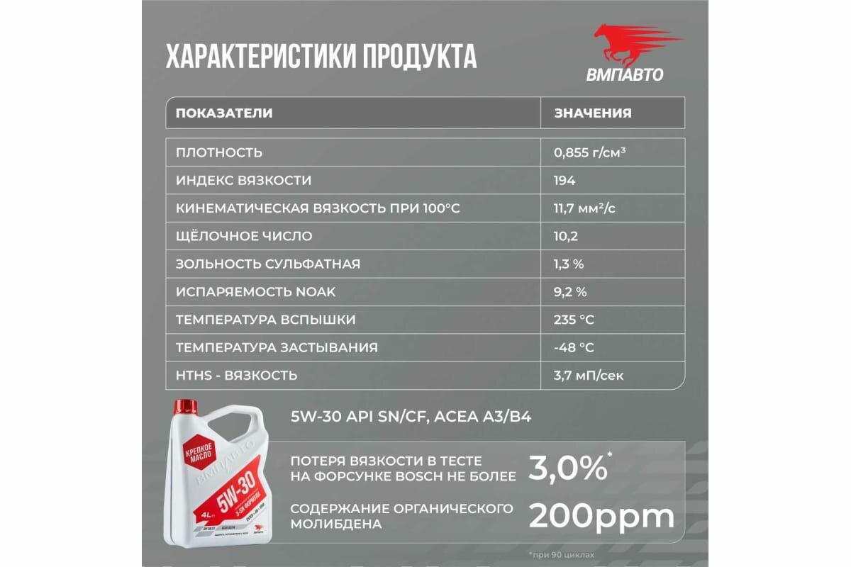 Масло моторное ВМПАВТО 3-SN 5w30 (A3/B4, SN/CF), канистра 4 л.