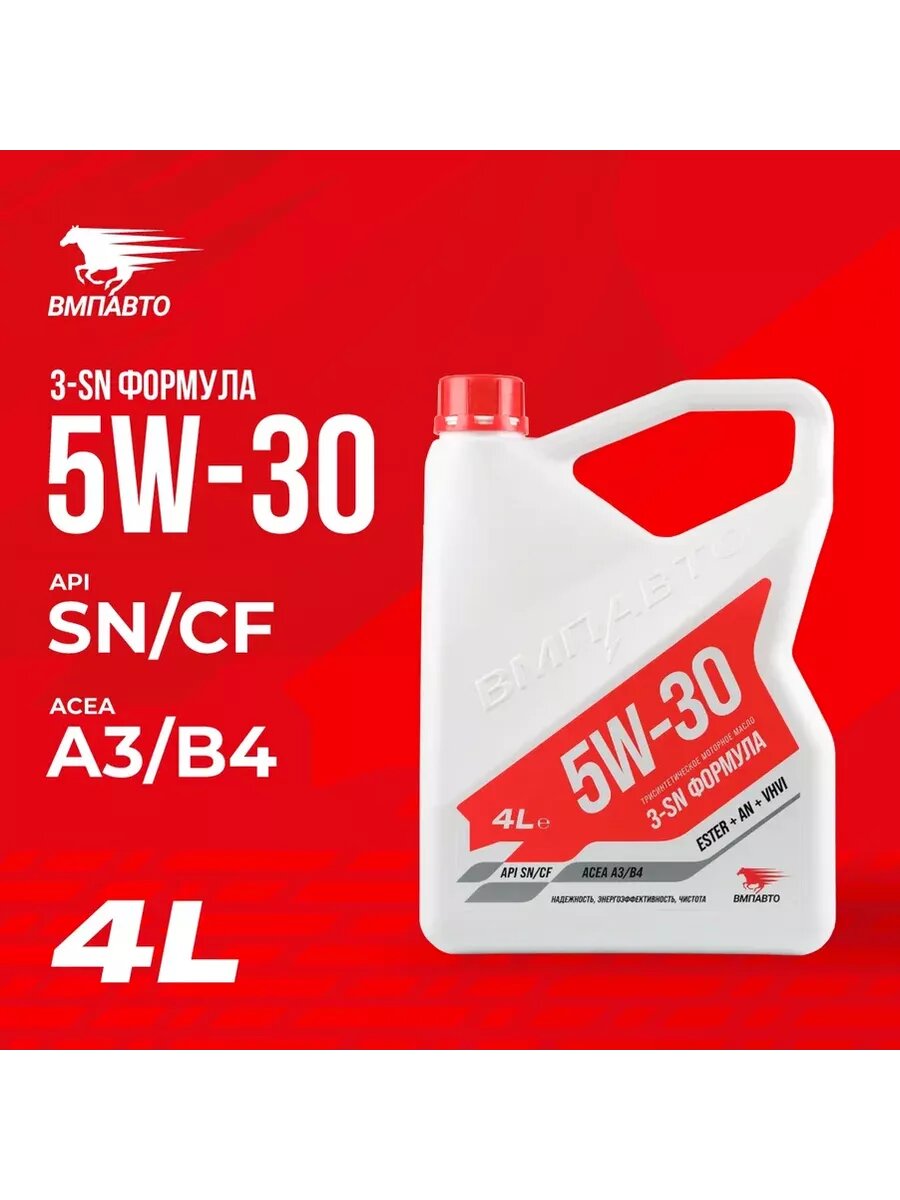 ВМПАВТО Масло Моторное Вмпавто 3-Sn 5W30 (A3/B4, Sn/Cf), Канистра 4Л.