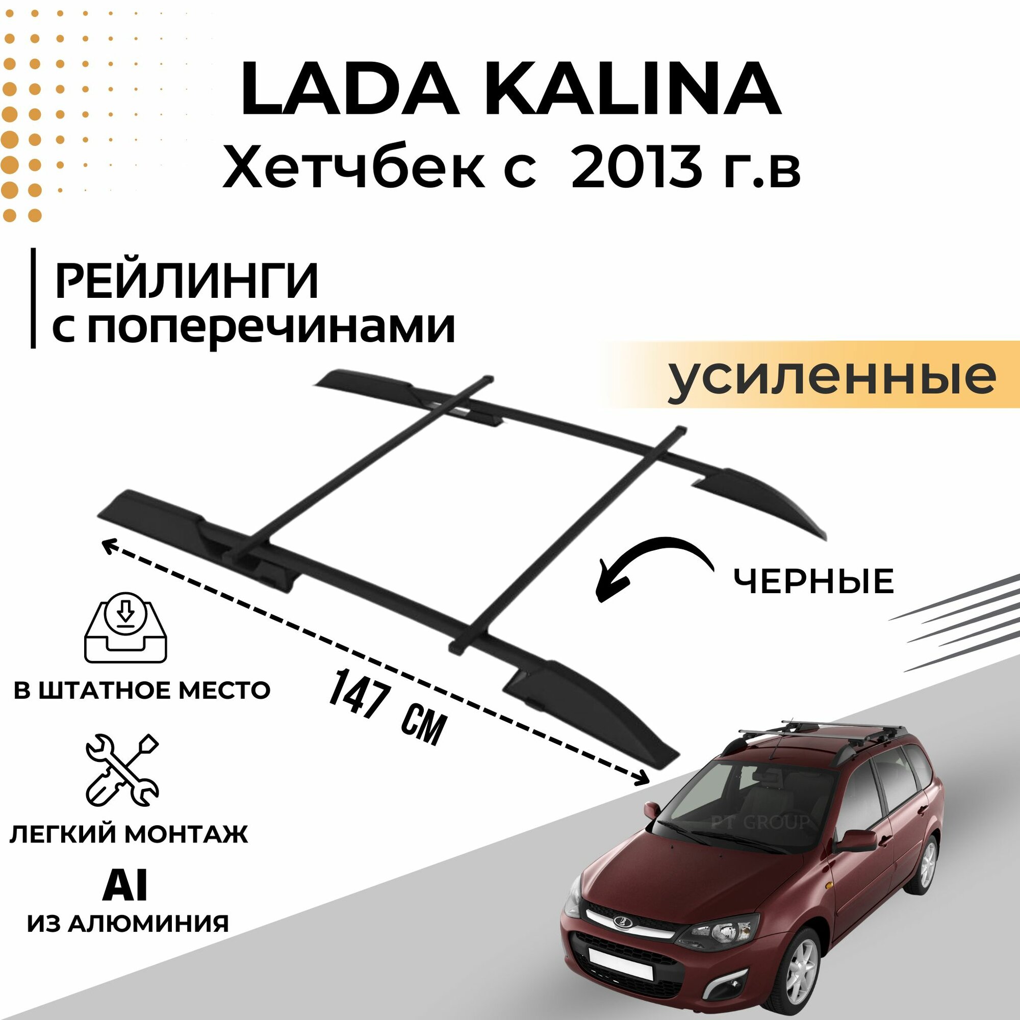 Рейлинги для Lada Kalina хэтчбек 2004-2013, Kalina II c 2013- черный с поперечиной ПТ групп арт: LKA551511 интересное: