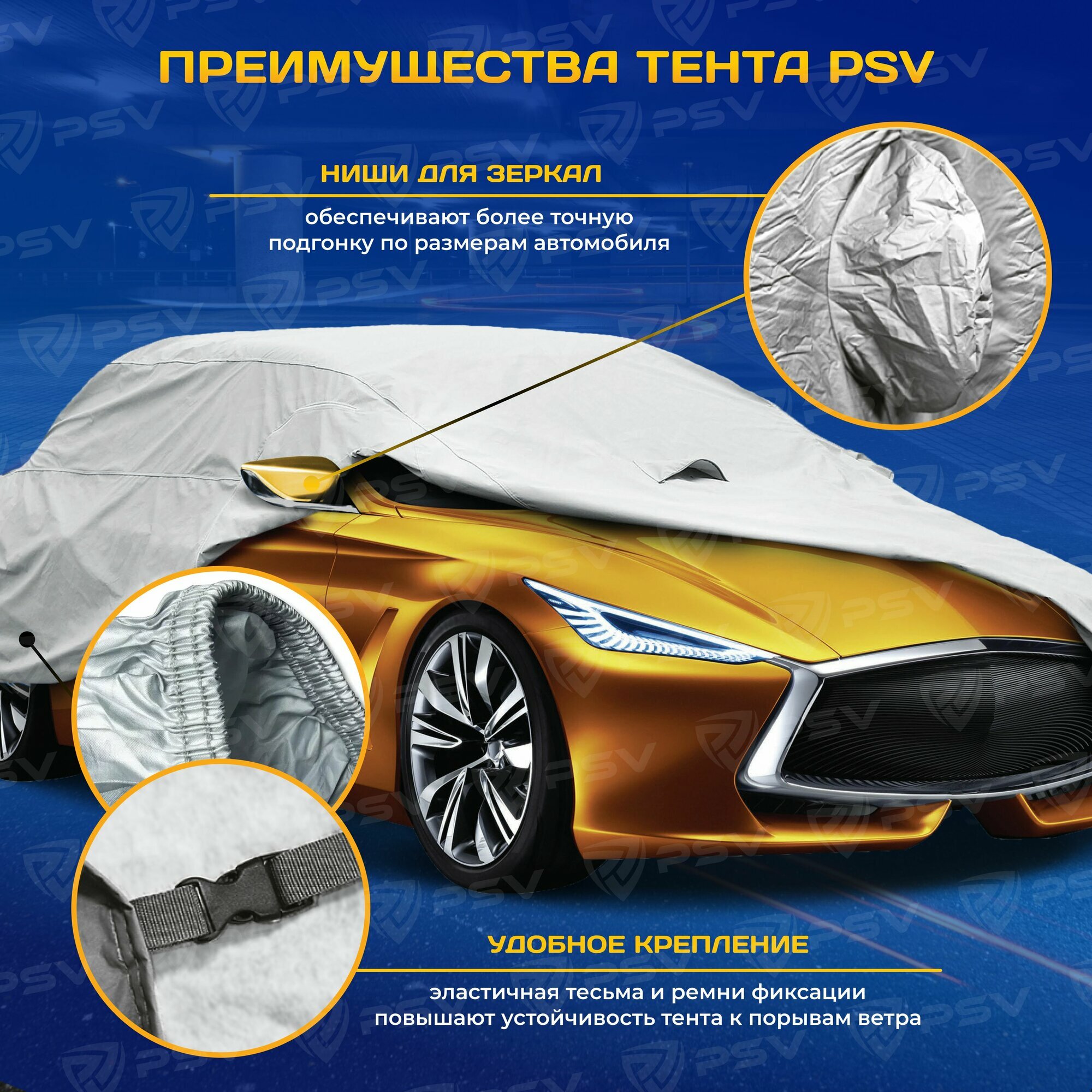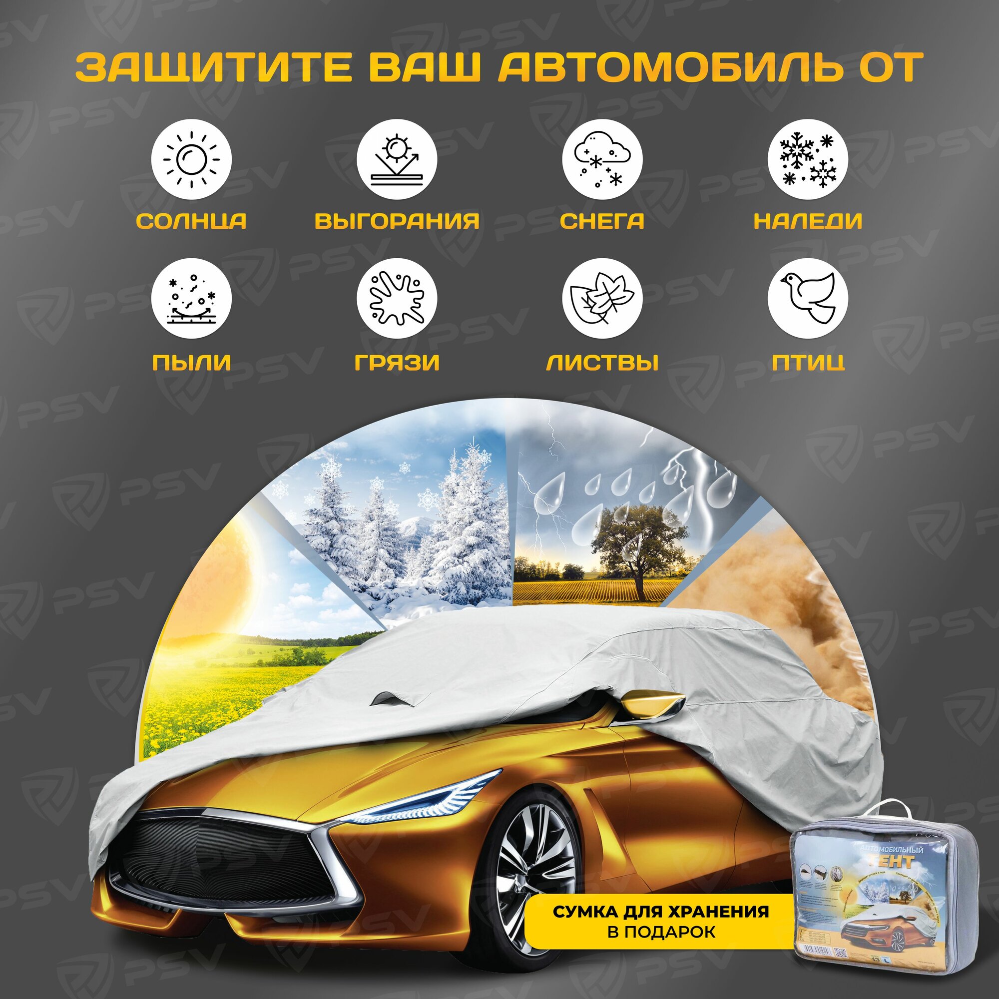СохранитьТент на машину PSV с молнией на водительской двери, размер M, однослойный интересное: