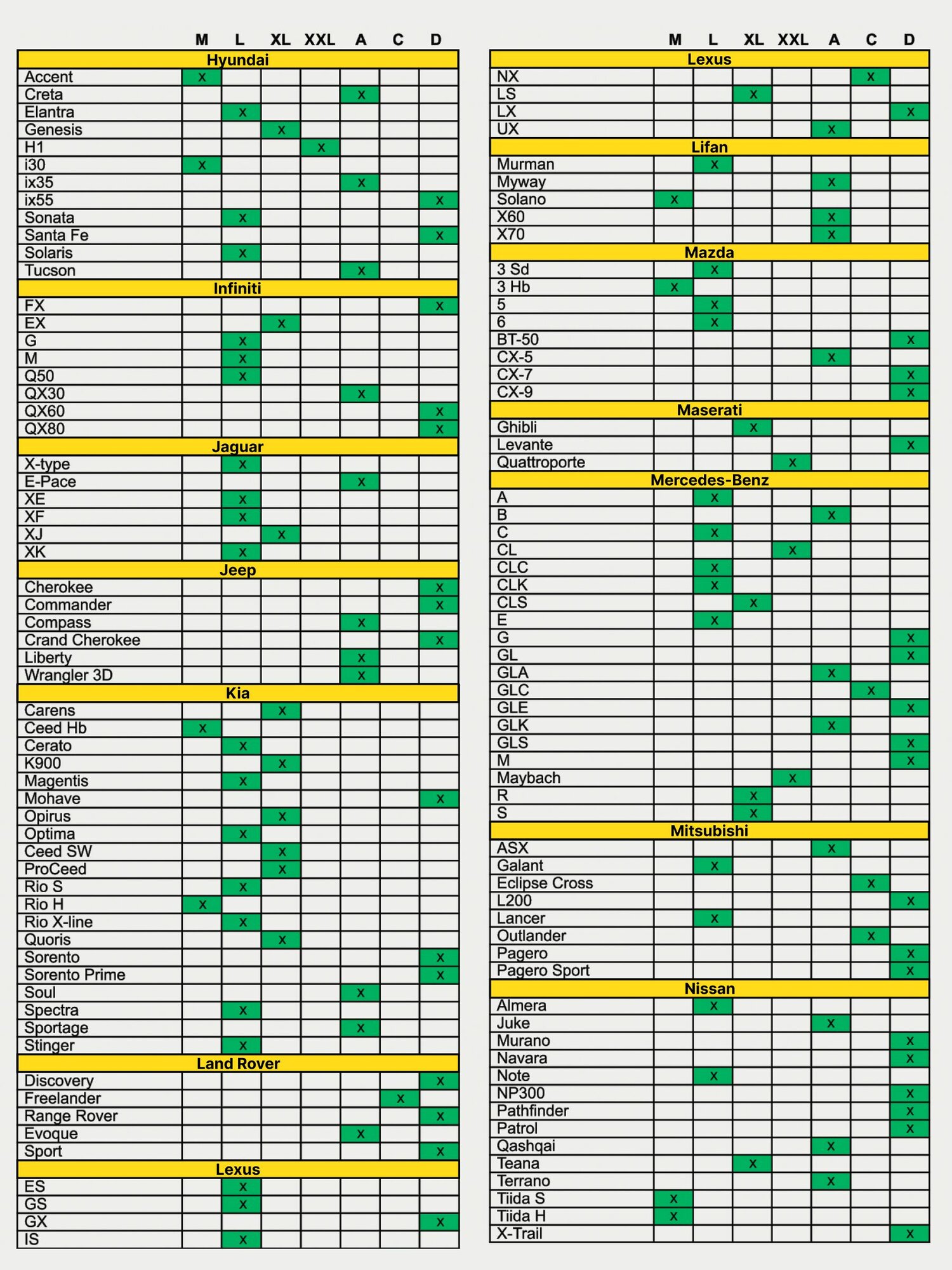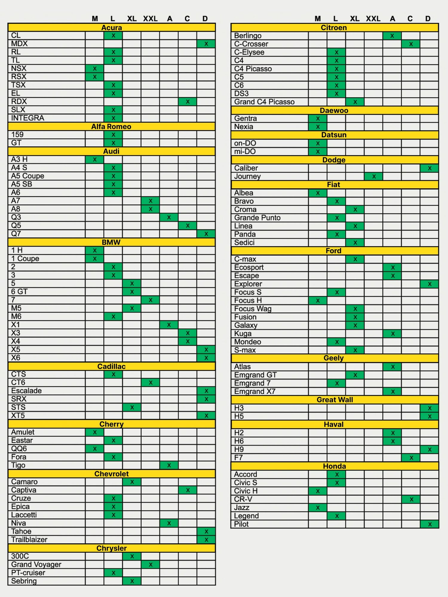 | Тип кузова | внедорожник / кроссовер / купе / лимузин / лифтбэк / микроавтобус / минивэн / пикап / родстер / седан / спайдер / тарга / универсал / хетчбэк |