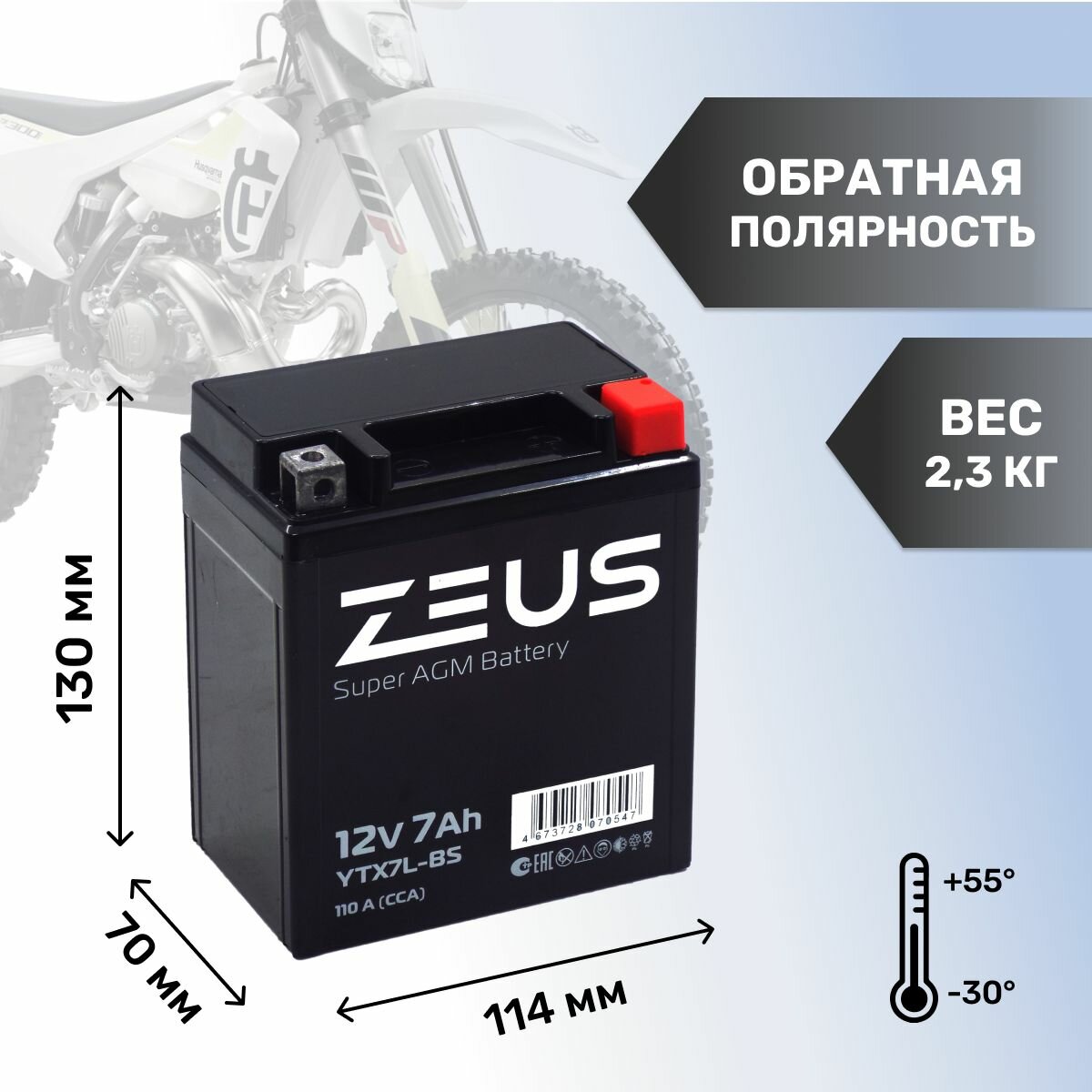 Аккумулятор стартерный agm для мотоцикла/квадроцикла/скутера ZEUS SUPER AGM 7 А*ч о. п. Обратная полярность (YTX7L-BS, UTX7L-BS, CT 1207) интересное: