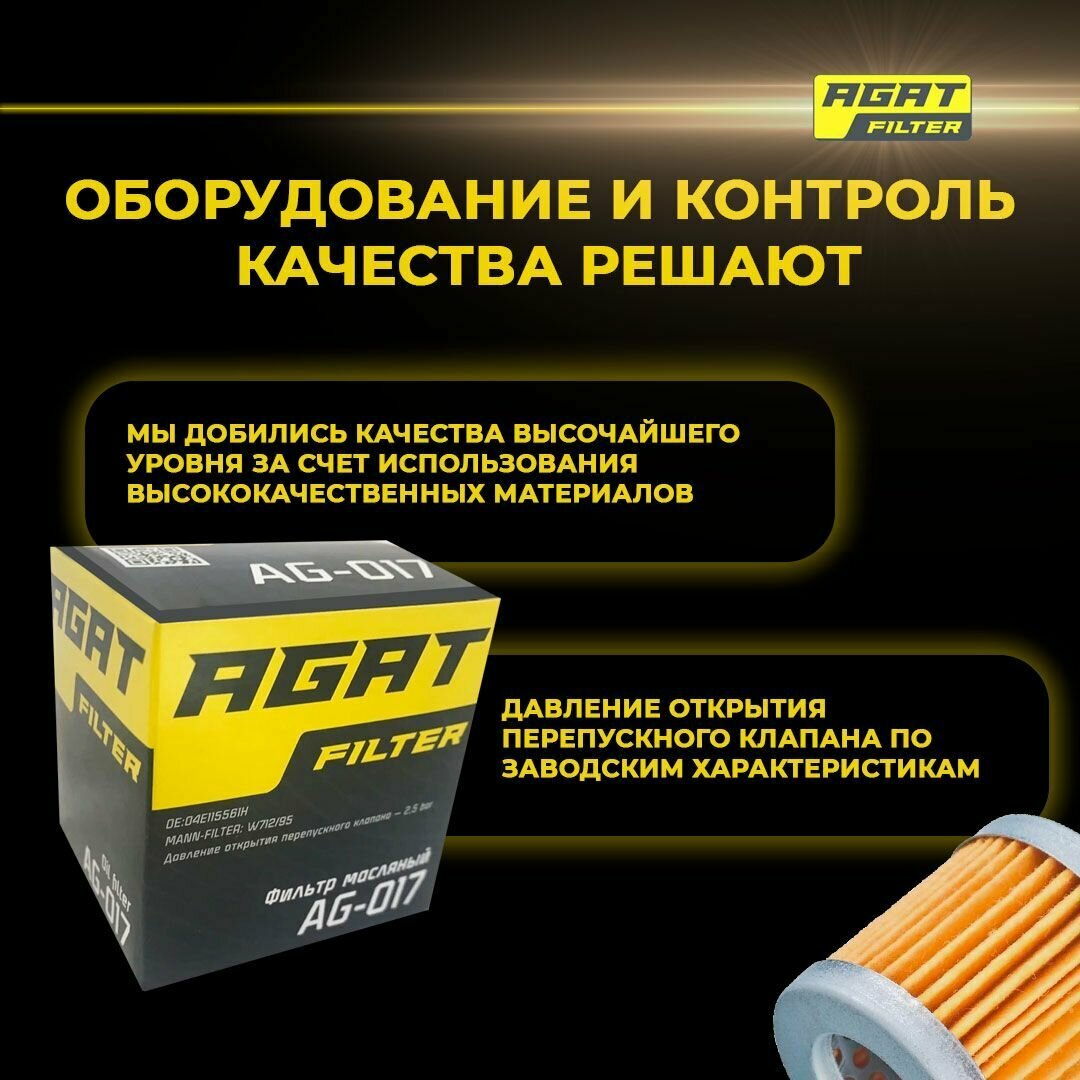 Купить Масляный фильтр AGATfilter AG-017 аналог MANN-FILTER W712/95 OE: 04E115561H