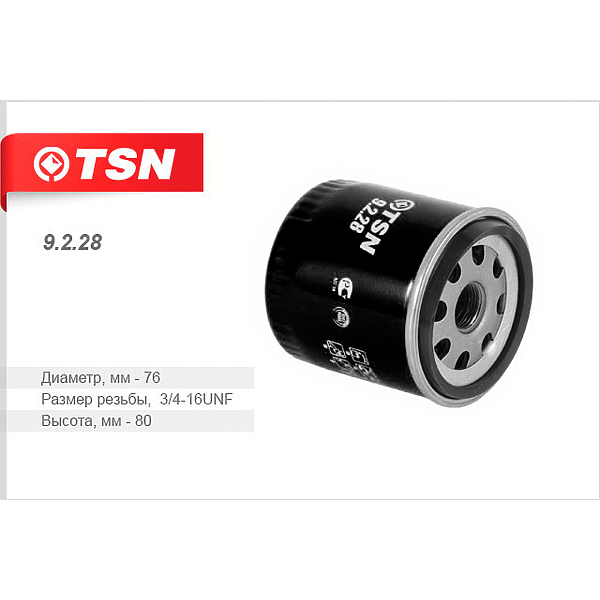 TSN Фильтр масляный 9228 9.2.28 Фольксваген Поло Седан, Форд Фиеста ,Эскорт, Вольво С70 ГАЗ волга