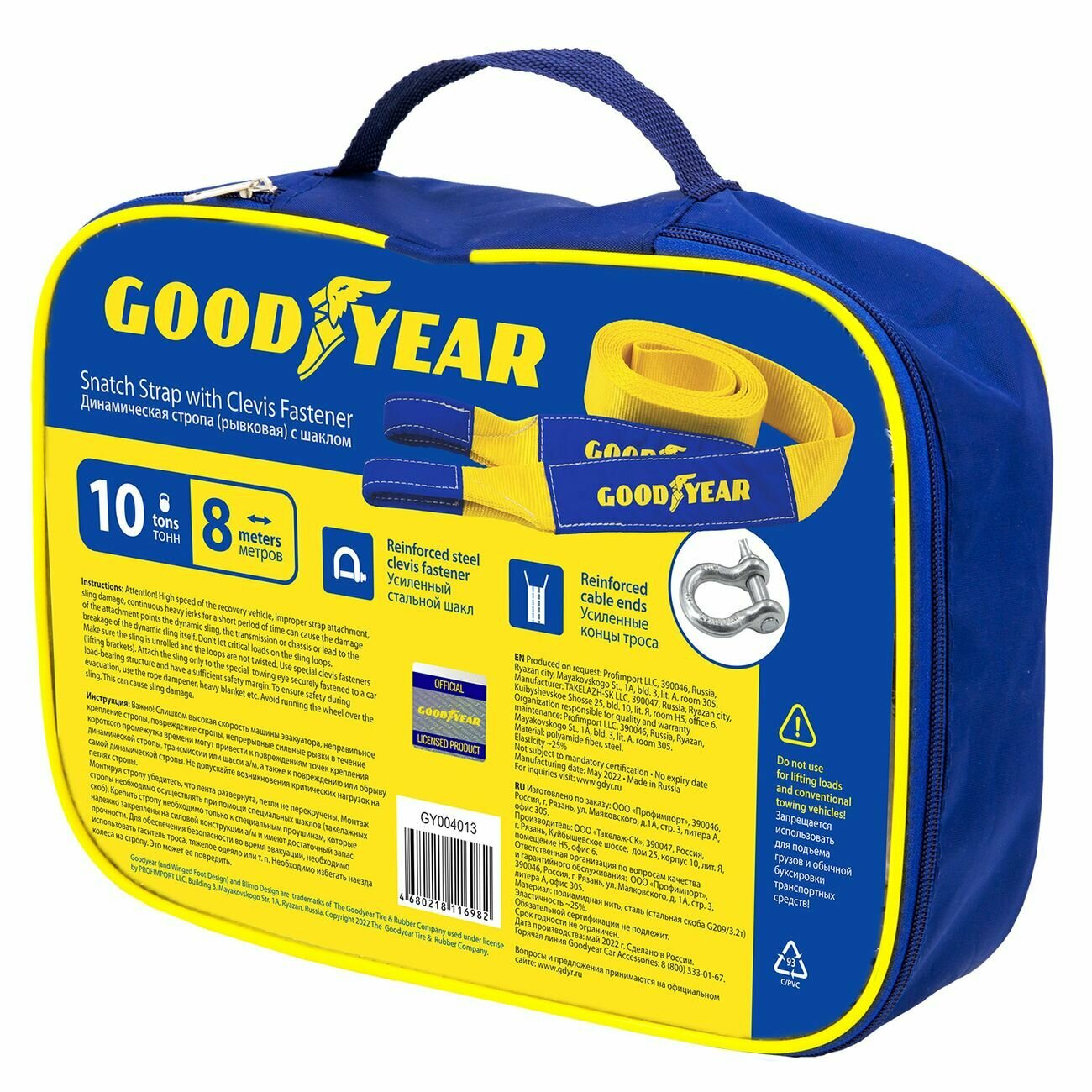 СохранитьТрос буксировочный Goodyear Стропа динамическая (рывковая) с шаклом 10т, 8м интересное: