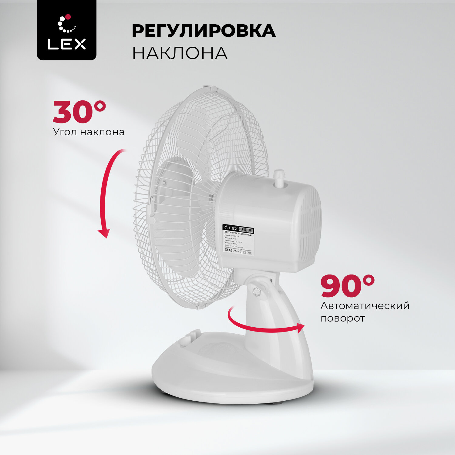Вентилятор настольный LEX LXFC 8378, диаметр лопастей 23 см, мощность 30Вт, 2 скорости. интересное: