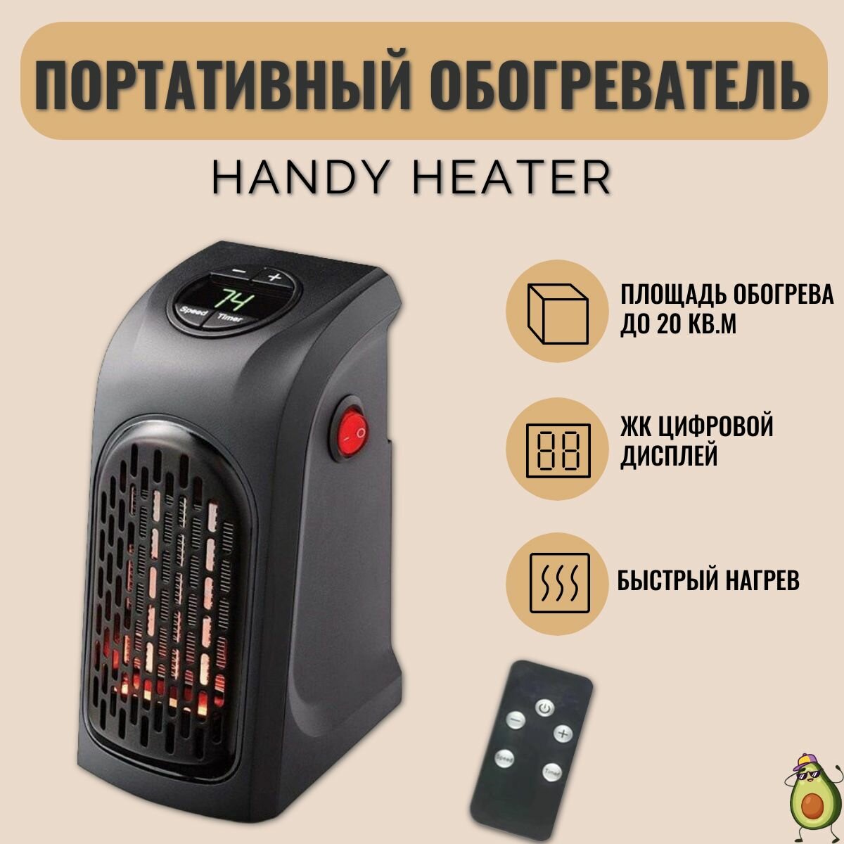 Портативный мини обогреватель 400Вт/ Тепловентилятор Настенный портативный/ Мини обогреватель Handy Heater интересное: