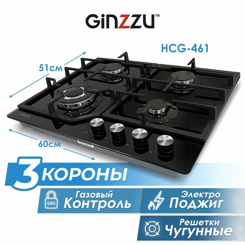 Газовая варочная панель Ginzzu HCG-461, 4 конфорки, электроподжиг, закаленное стекло