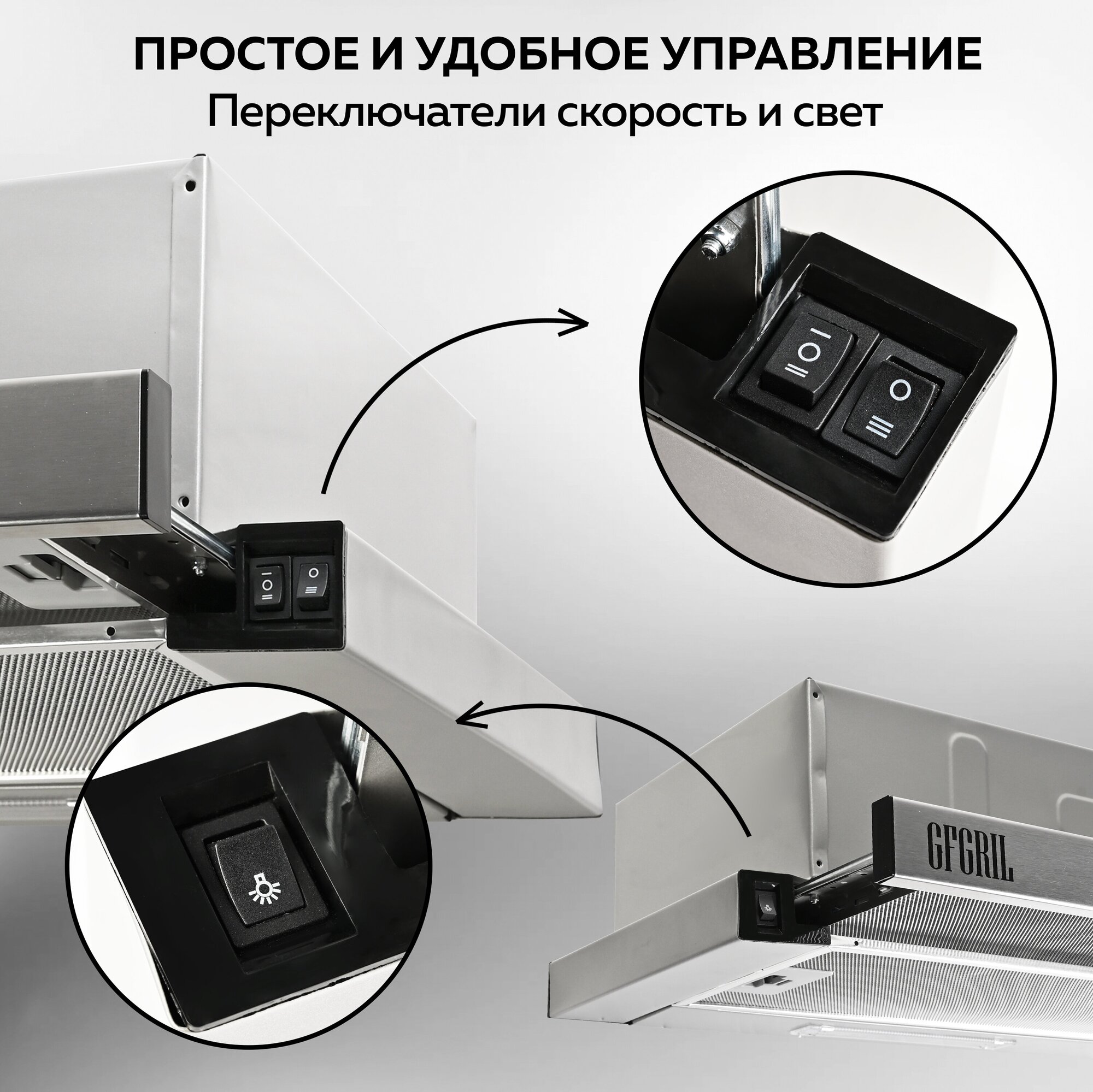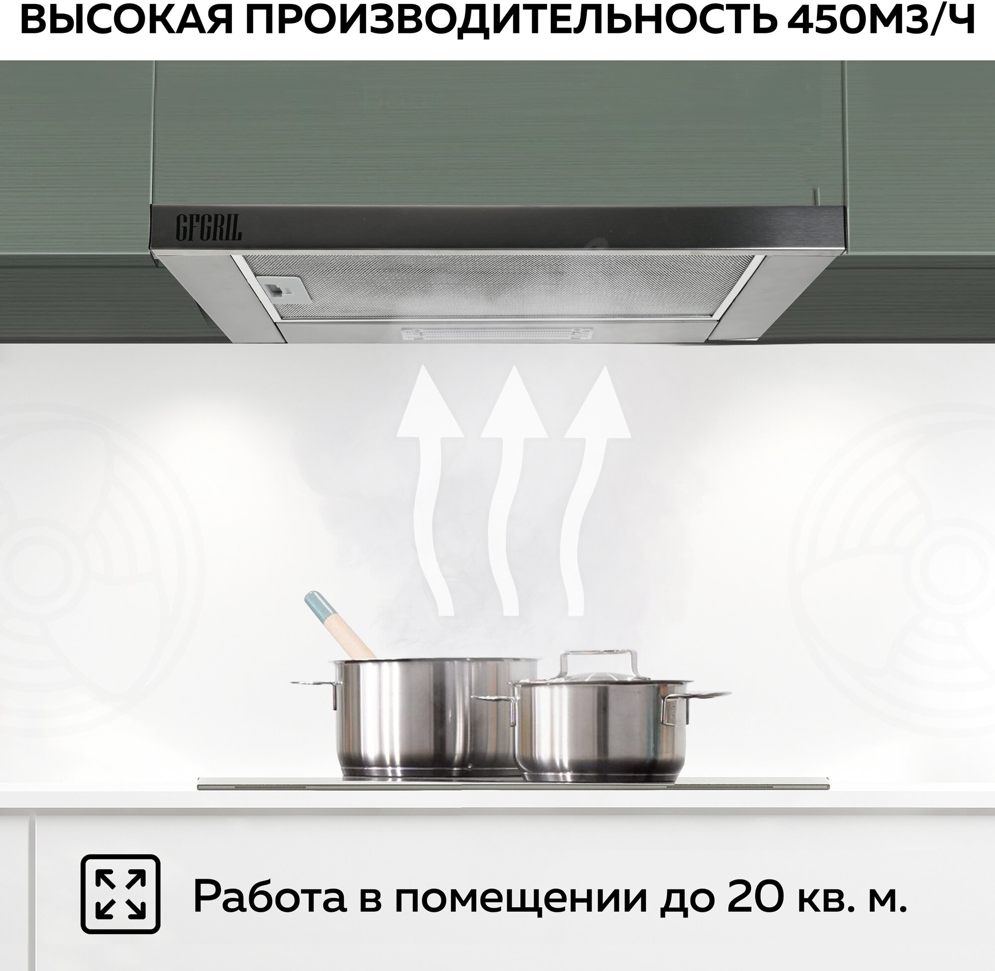 GFGRIL Вытяжка кухонная встраиваемая GF-HD100TIN, 60 см, 450 м3/ч, 140 Вт, 3 скорости, нержавейка Упаковка интересное: