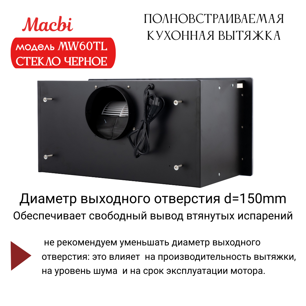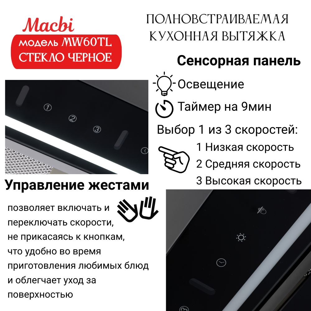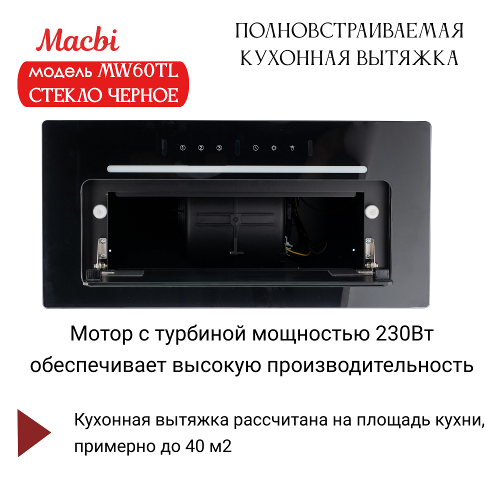 Вытяжка MACBI YAMW60TL "Black", для кухни, полновстраиваемая интересное: