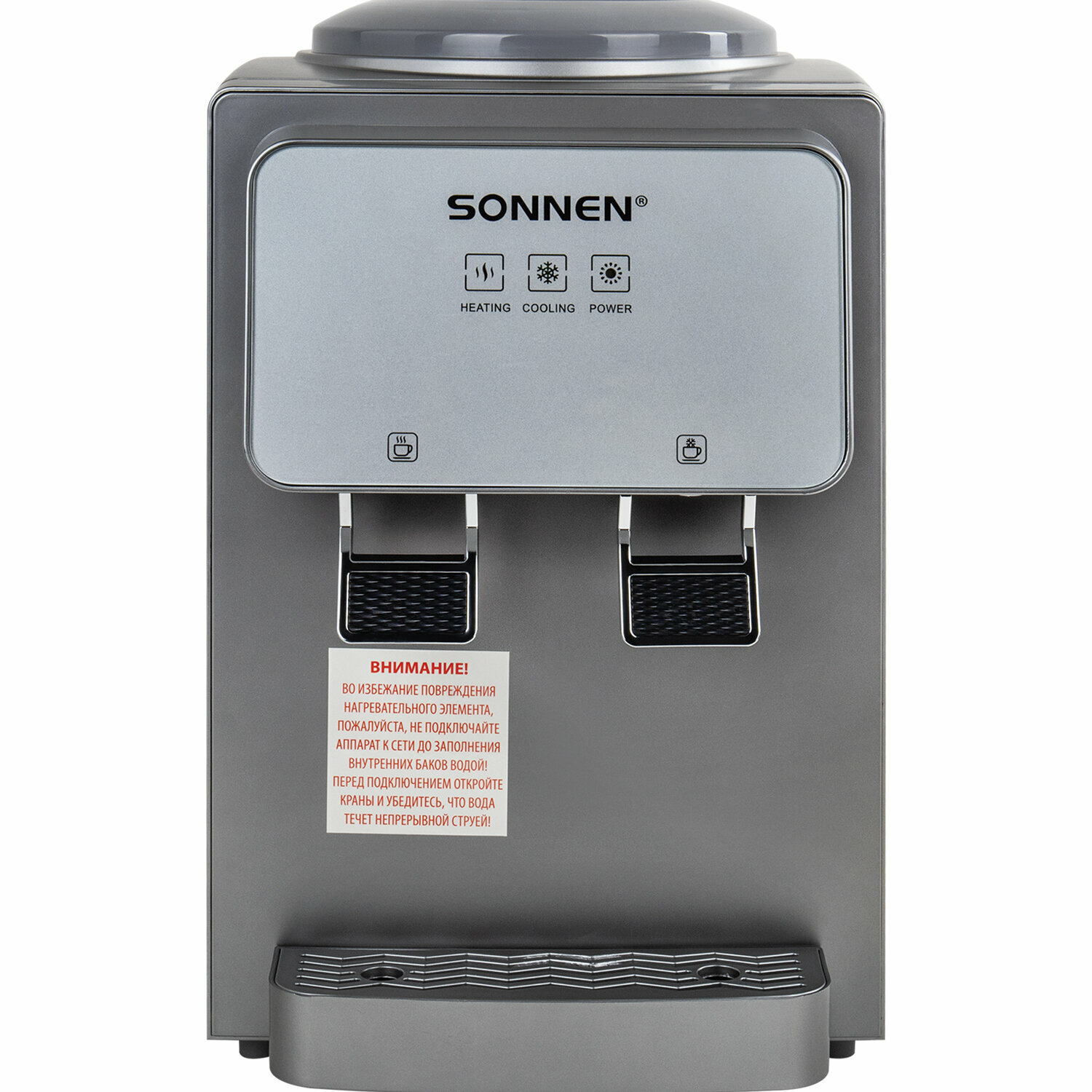 Кулер для воды SONNEN TSE-02GP, настольный, нагрев/охлаждение электронное, 2 крана, серебристый, 455745
