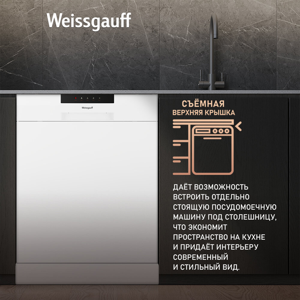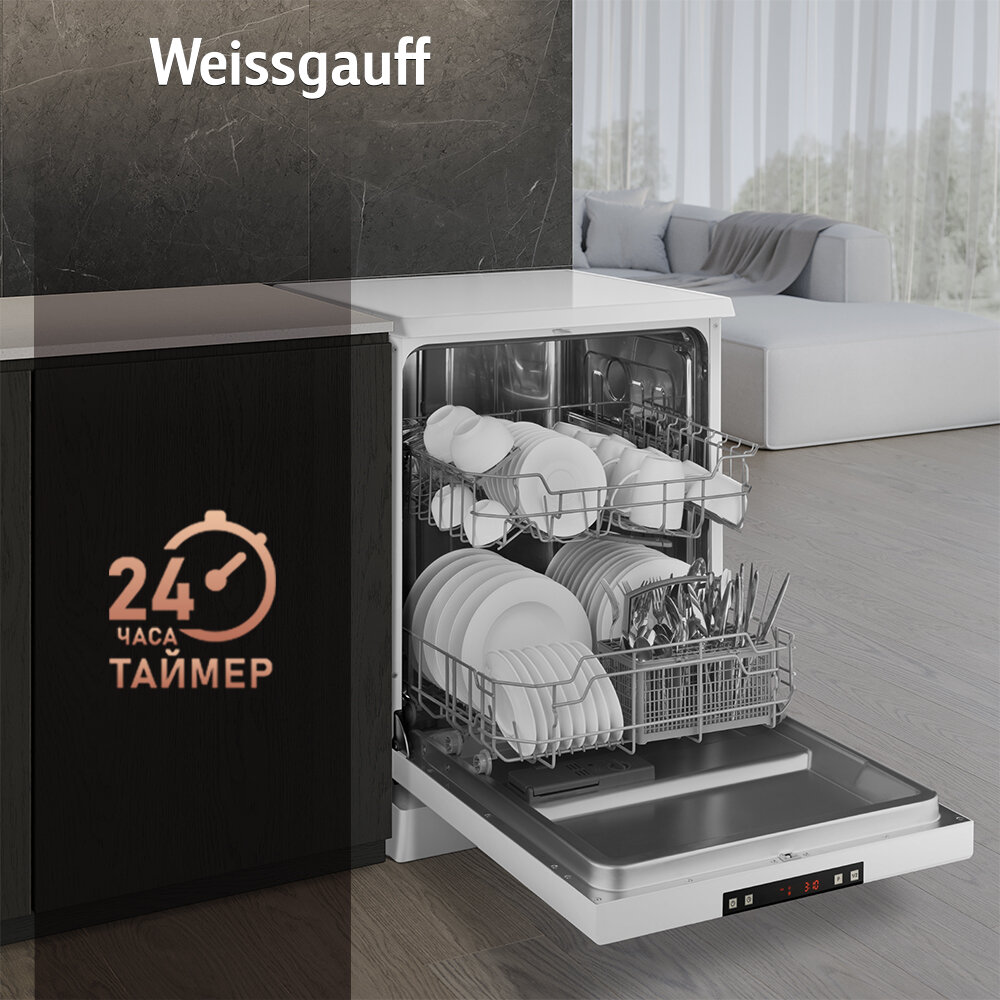 Посудомоечная машина Weissgauff DW 6025 (модификация 2024 года),3 года гарантии, 12 комплектов, 6 программ, полная защита от протечек AquaStop, половинная загрузка, дозагрузка посуды, таймер отсрочки запуска, А++
