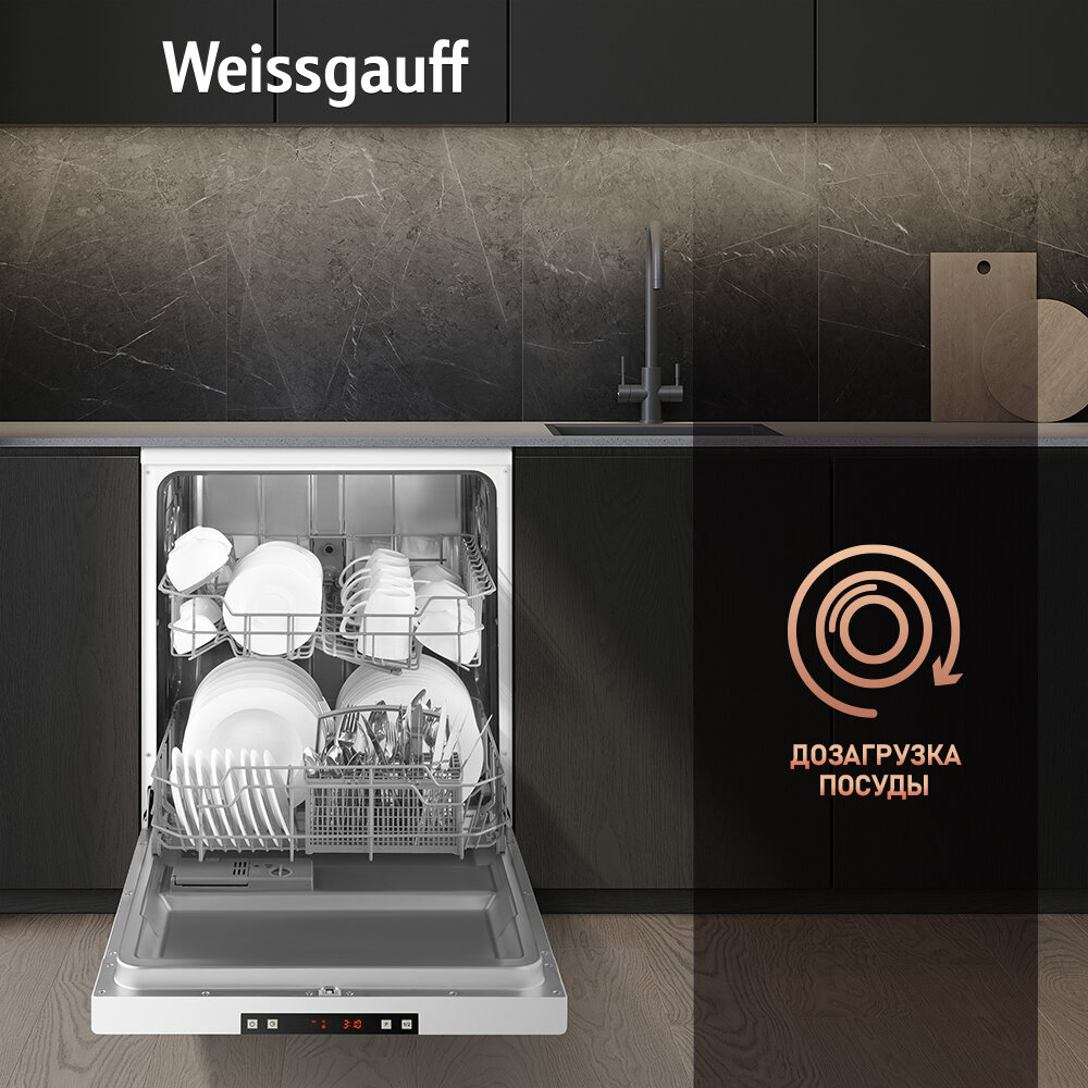 Посудомоечная машина Weissgauff DW 6025, дозагрузка посуды, таймер отсрочки запуска, А++ интересное: