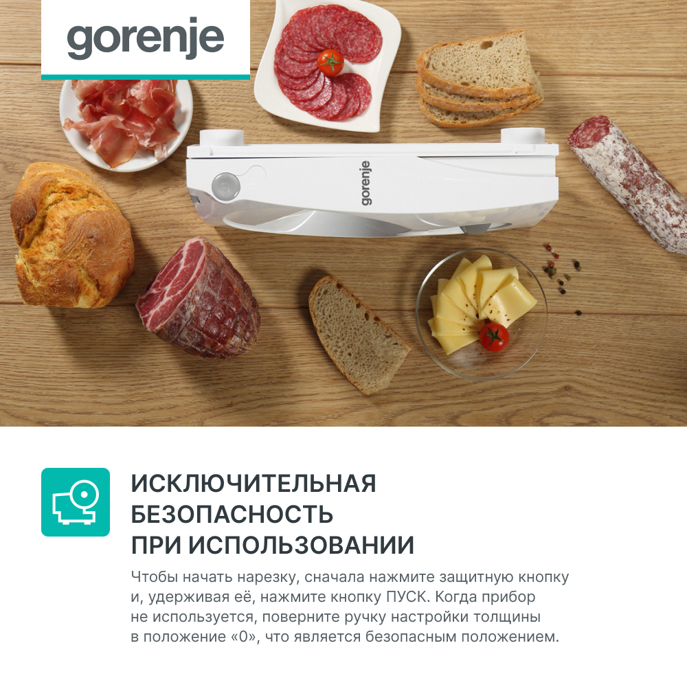 Ломтерезка Gorenje R401W белый, мощность 100Вт, толщина нарезки до 17мм интересное: