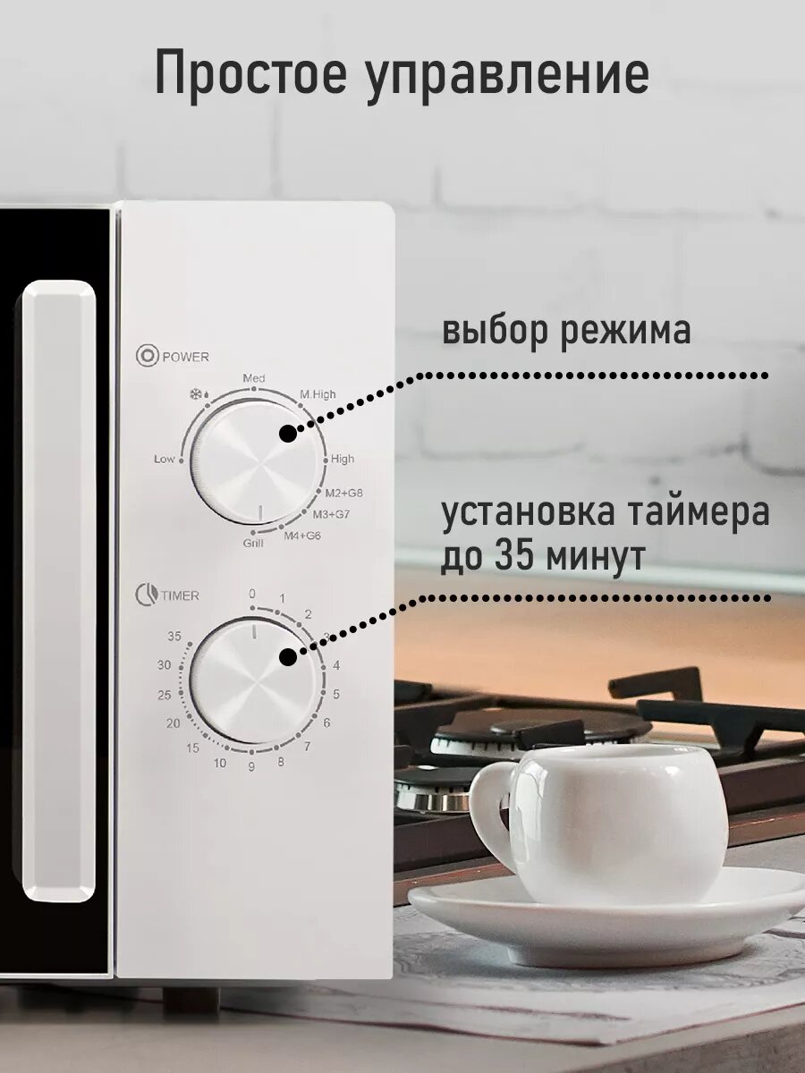 Микроволновая печь FS MWO D 20.10 WH, Сенсорное управление, 6 программ для приготовления, антипригарная эмаль, таймер, блокировка от детей.