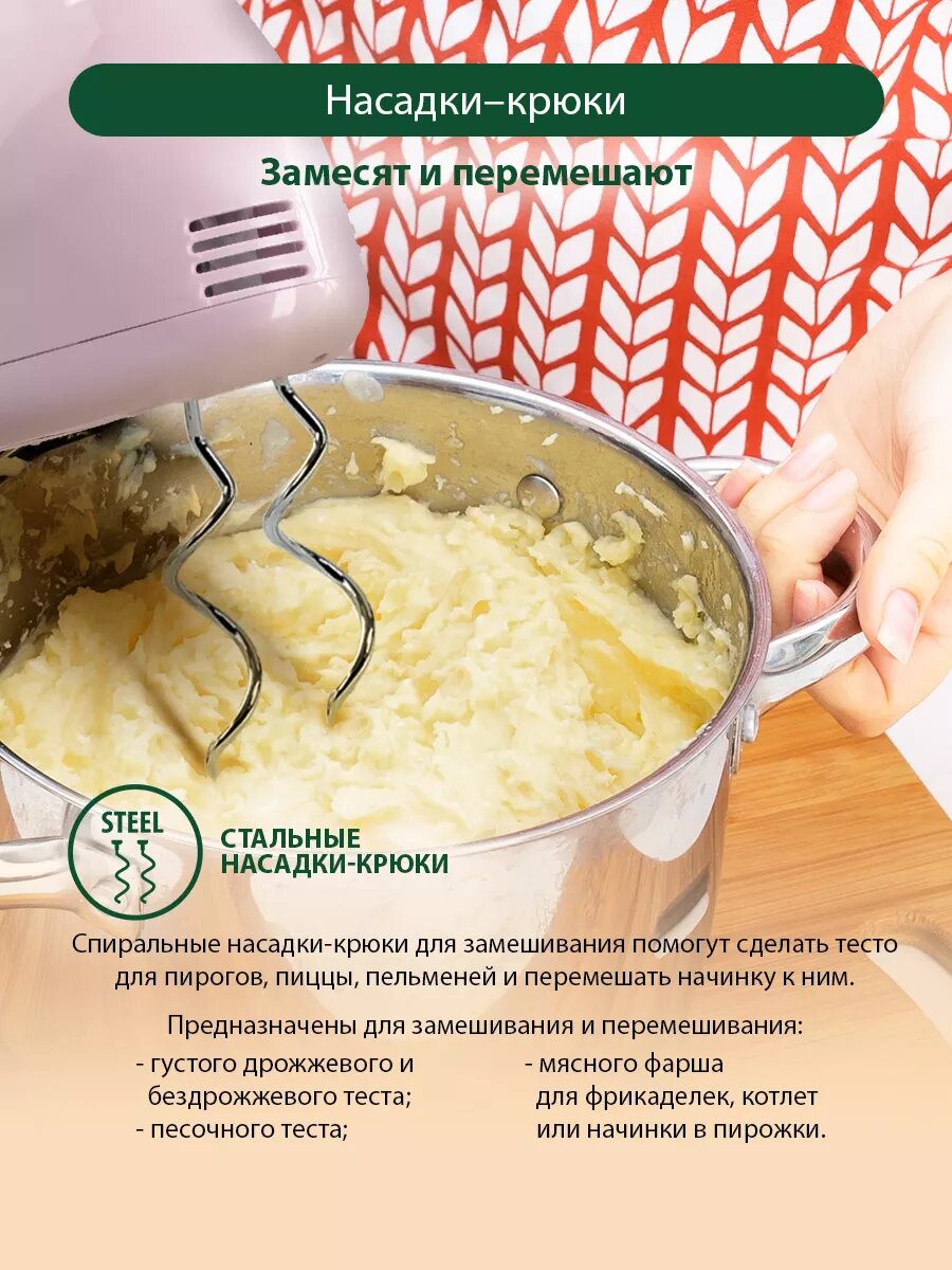 | Насадки | венчик для взбивания / крючки для замешивания теста |