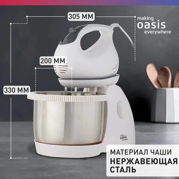 Миксер стационарный электрический кухонный making Oasis everywhere MH-60W, 600 Вт