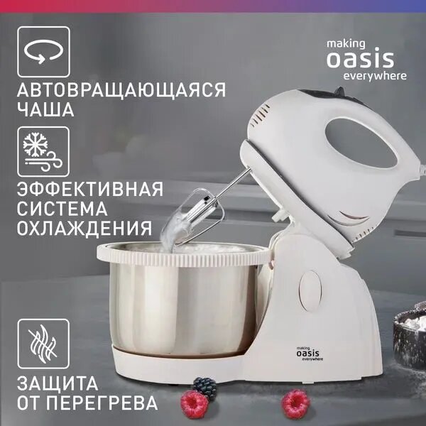 Стационарный миксер Oasis MH-60W, 600 Вт, 3 скорости, турборежим интересное: