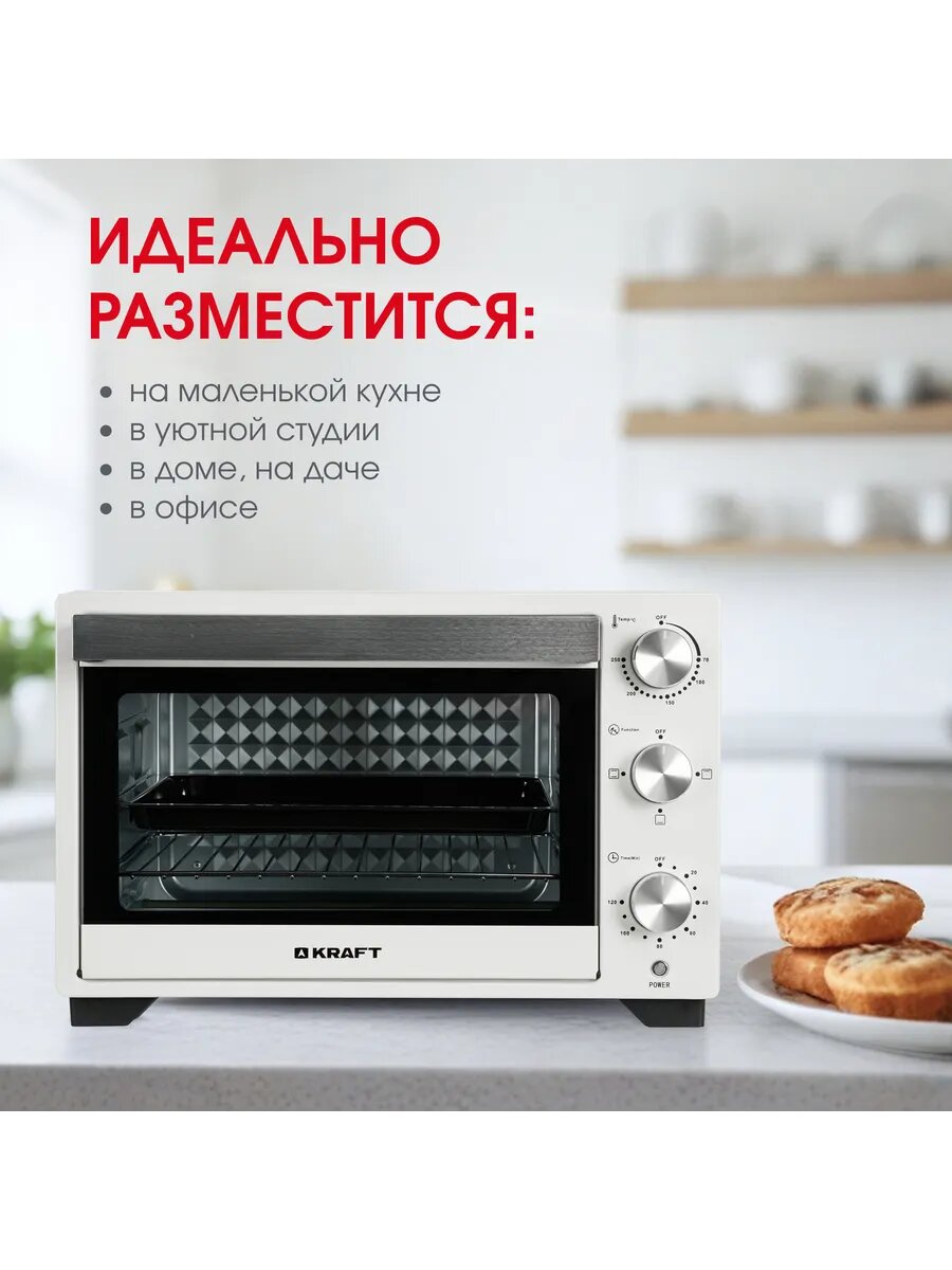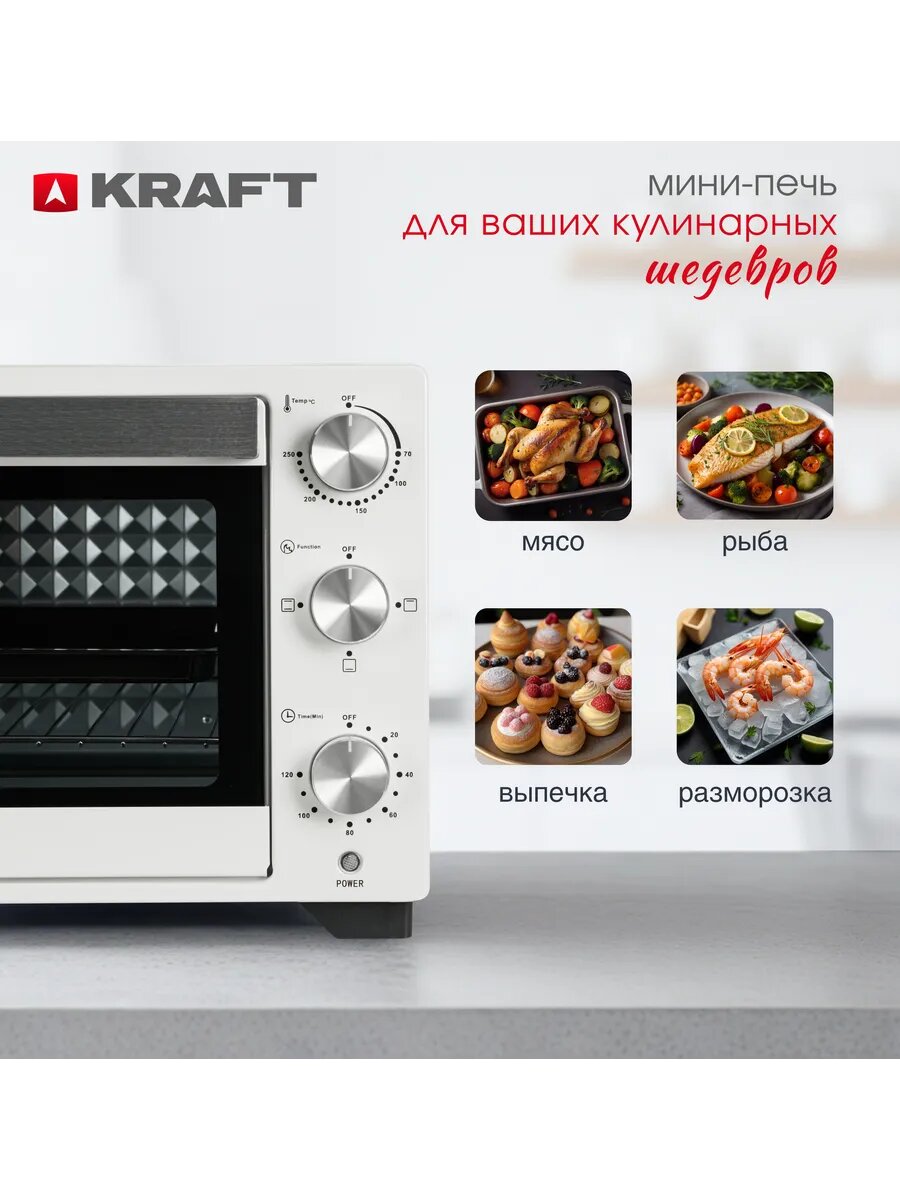 Мини-печь KRAFT KF-MO 270 FW, 27 л, 1300 Вт, белый