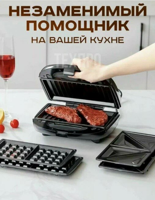 Мультипекарь для приготовления вафель, Вафельница, сендвичница электрическая, орешница, гриль,6 в 1, индикатор нагрева, 1500Вт, черный интересное: