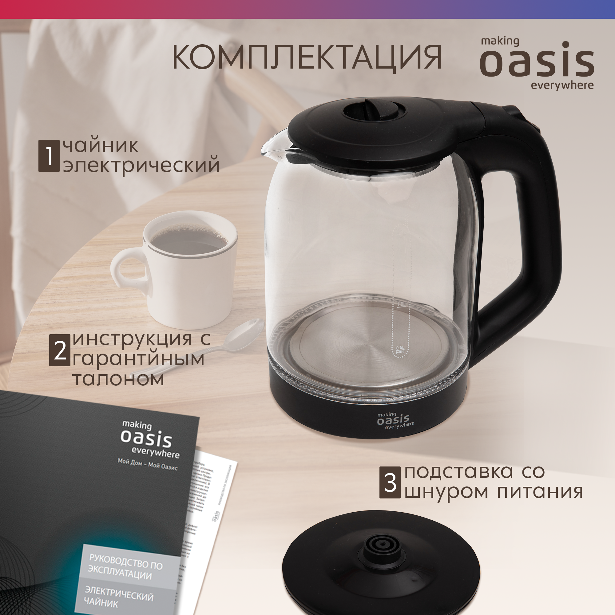 Чайник Oasis K-8GI 2000вт 1,8л, стекло, бежевый