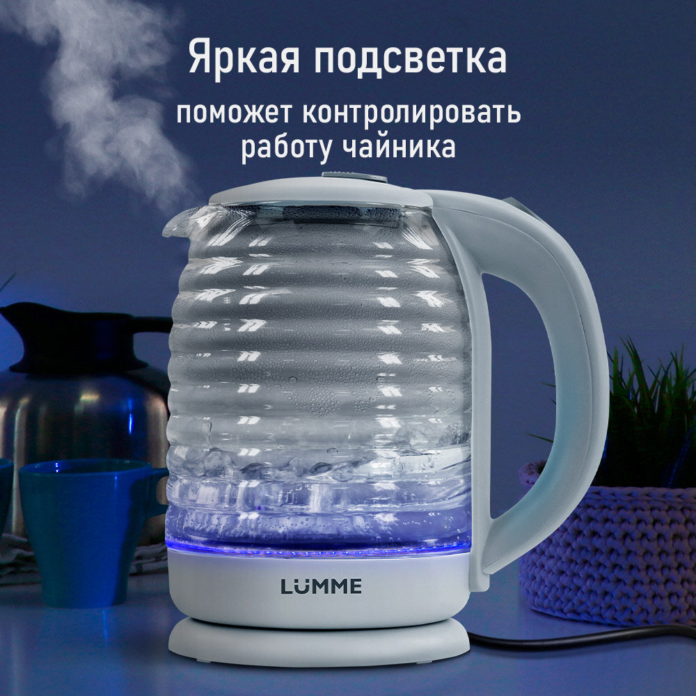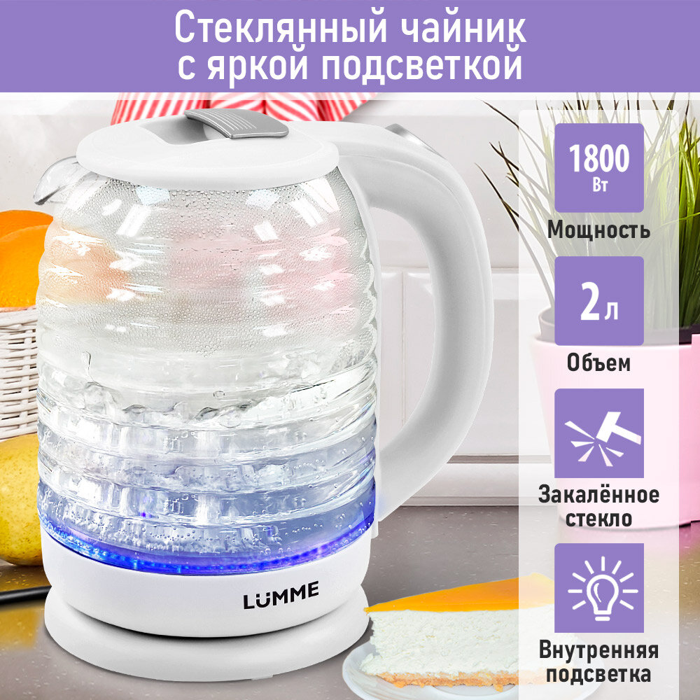 Электрический чайник LUMME LU-4102 белый жемчуг стеклянный с подсветкой 2 л интересное: