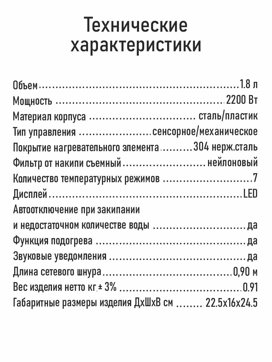 Чайник металлический с контролем температур, умный 1.8 л